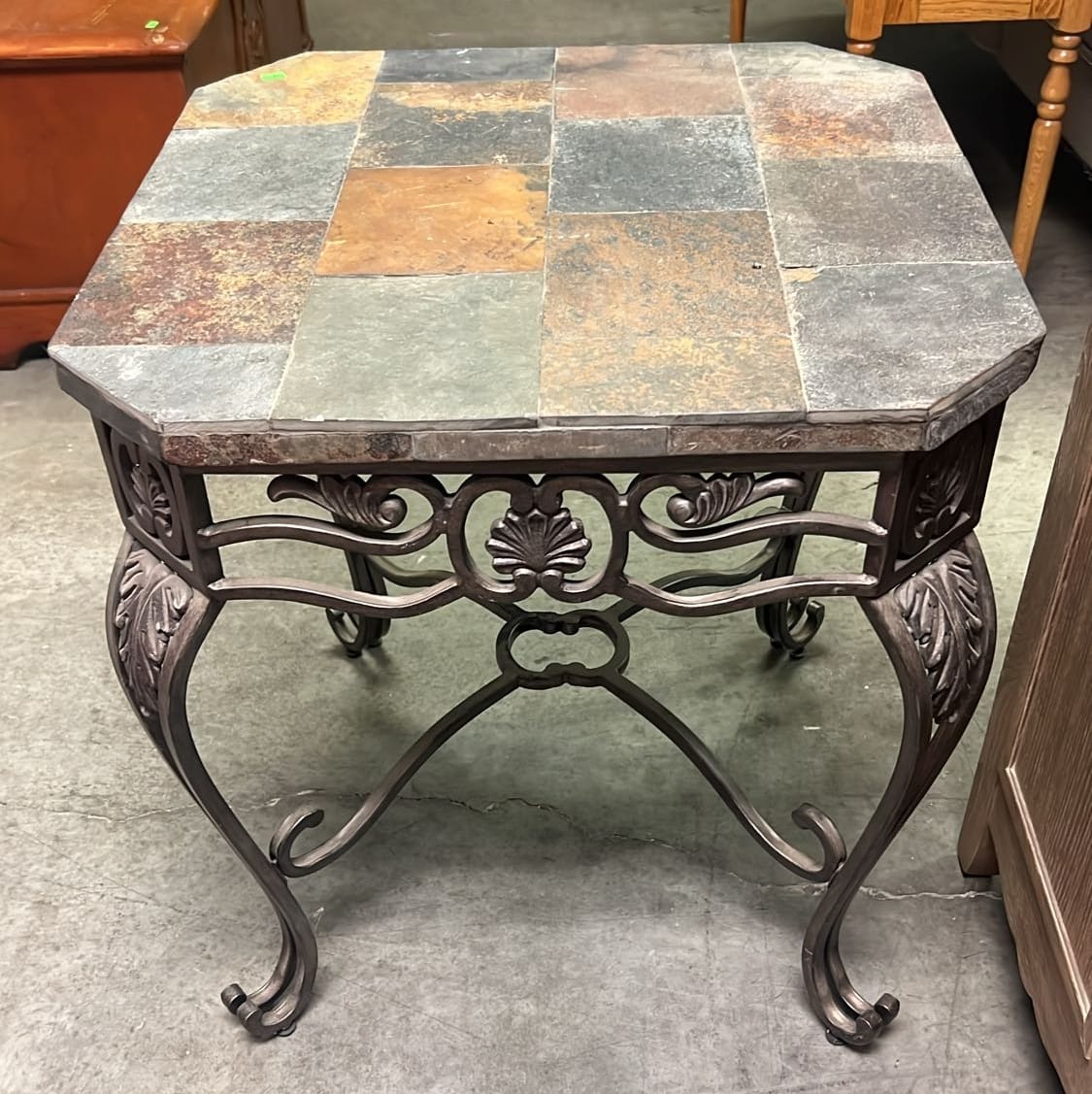 9 Tile Top Iron End Table 26”x28.5”x26”