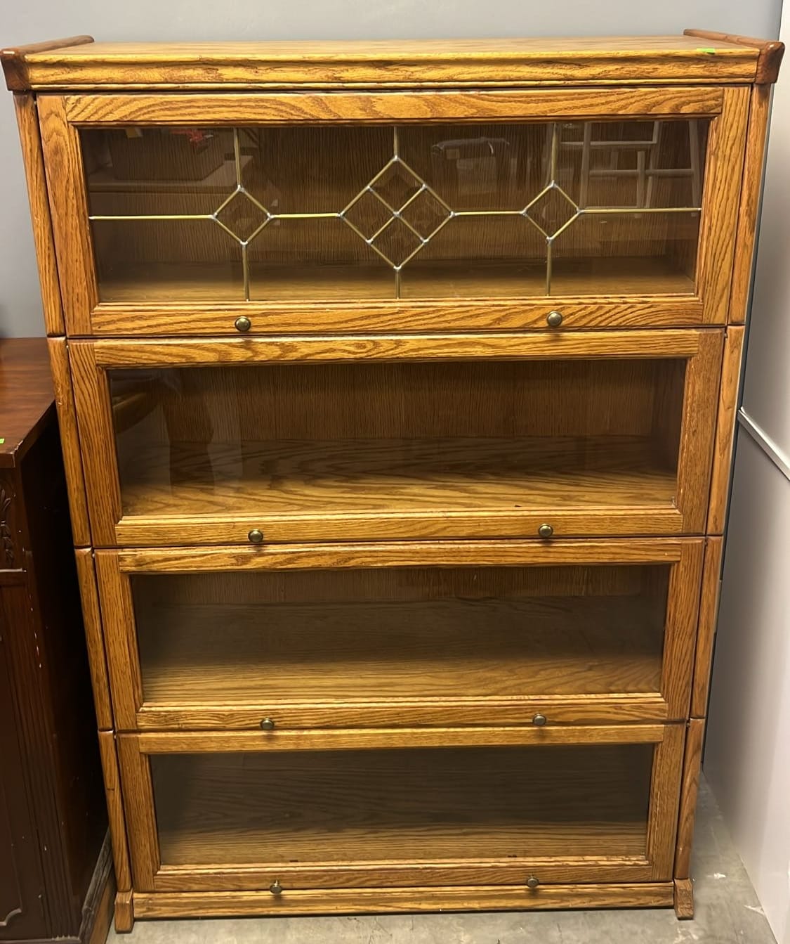 12 Oak Ballister Cabinet with Leaded Glass Door 37”x54.5”x13.5”