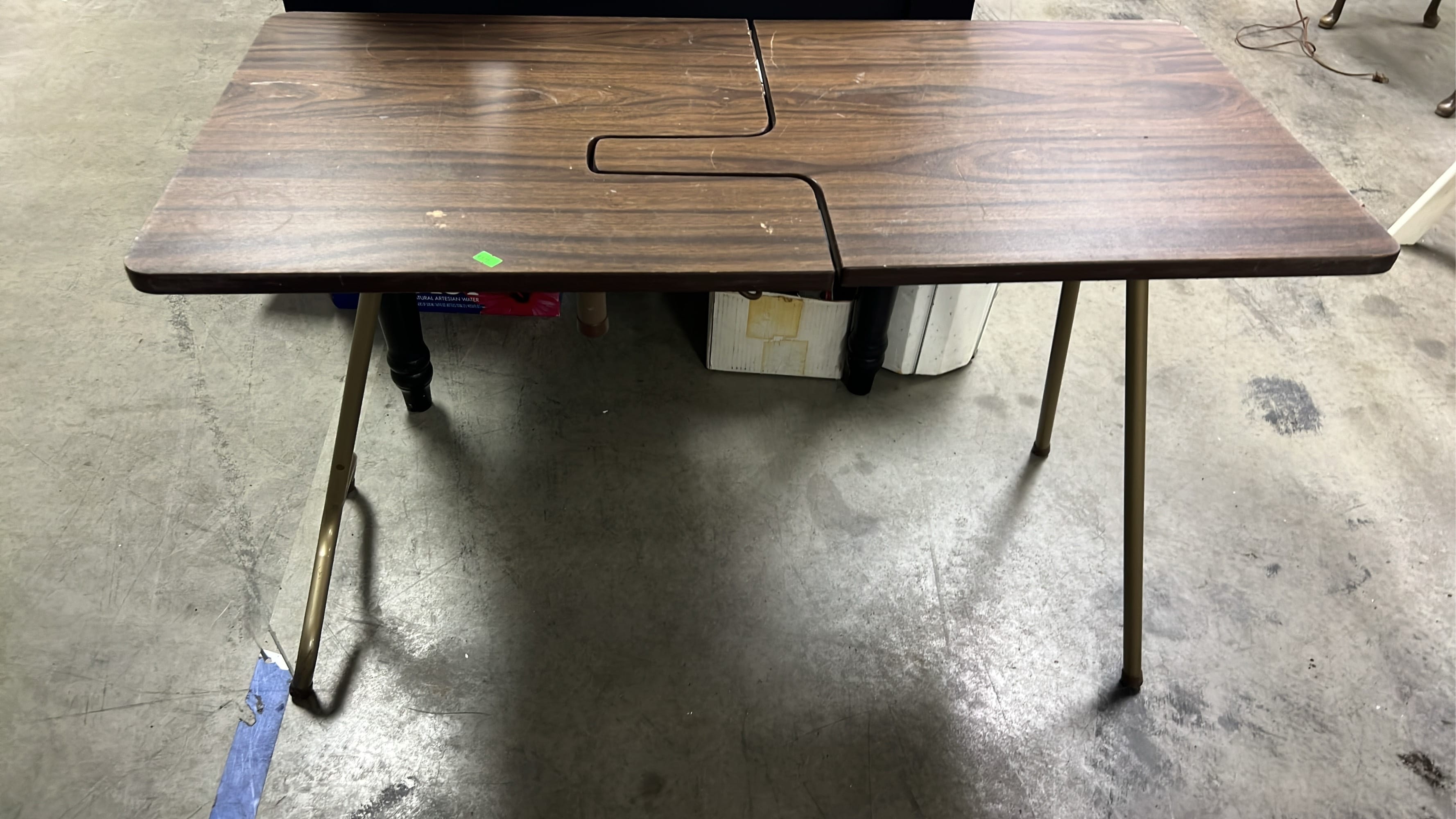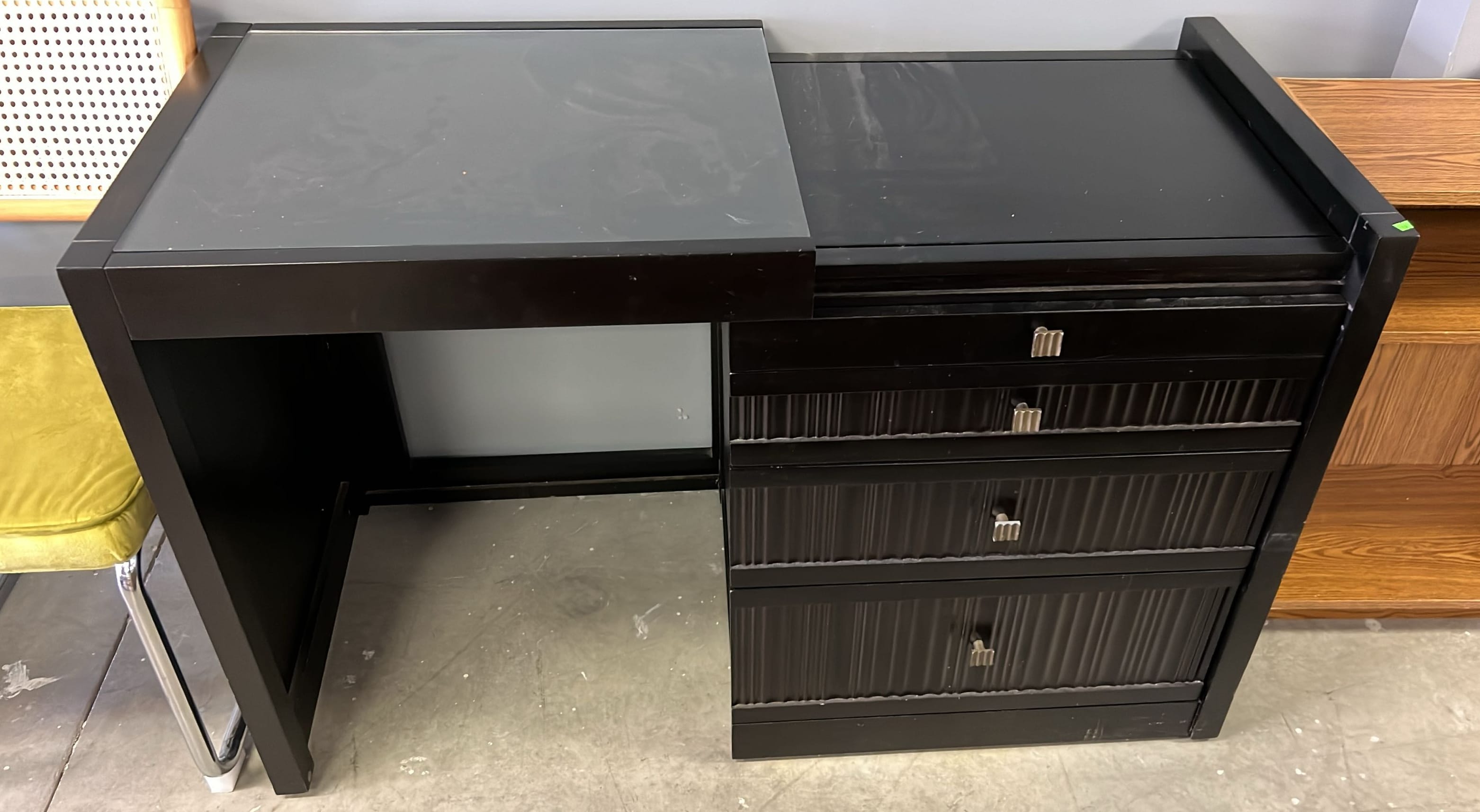 19 Space Saver Desk with Glass Top (see photos) 27.25”x30.25”x22” Extended length 48”