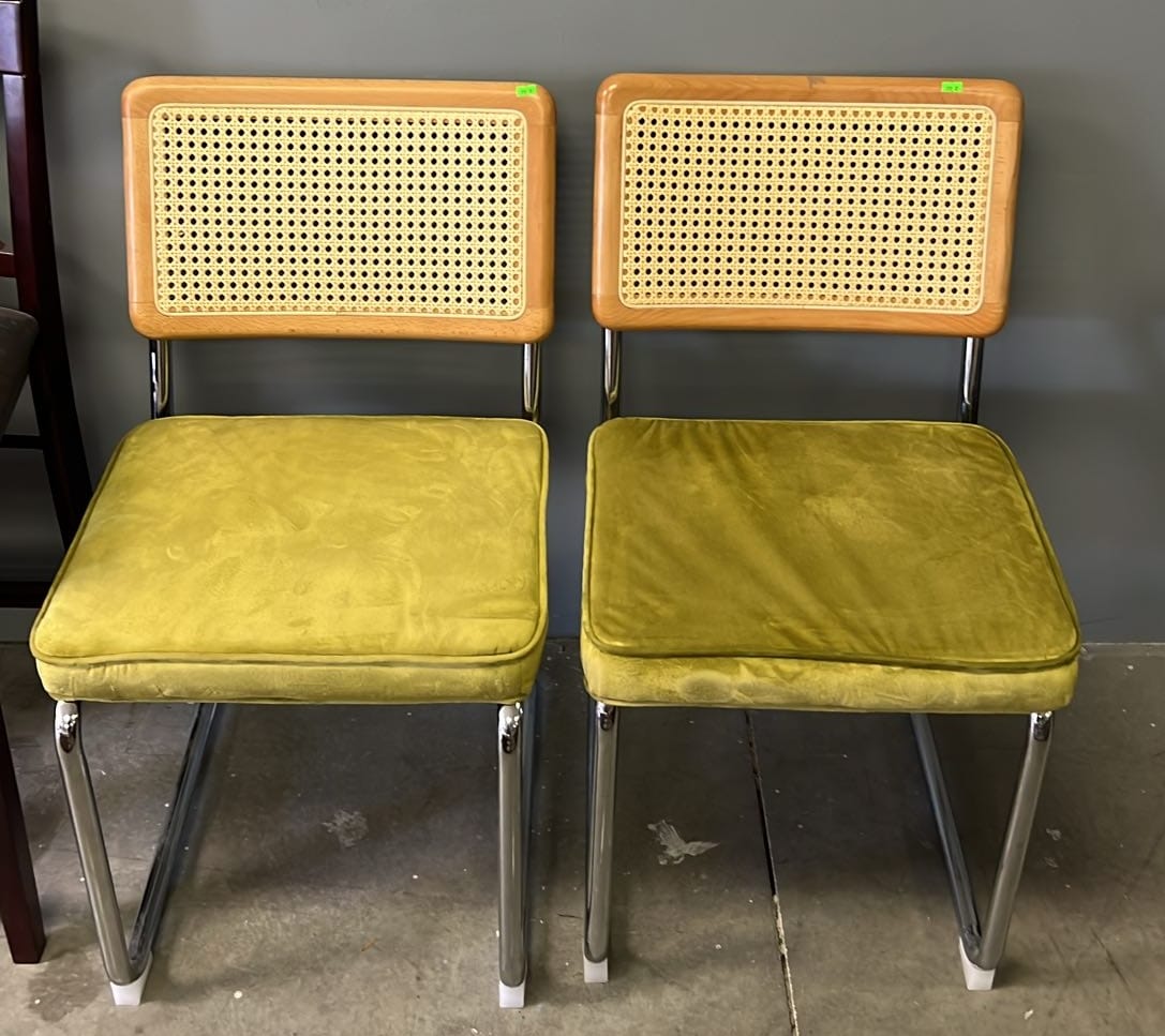 20 Two - Mid Century Dining Chairs with Cane Backs & Padded Seats 18.5”W Seat Ht 19”