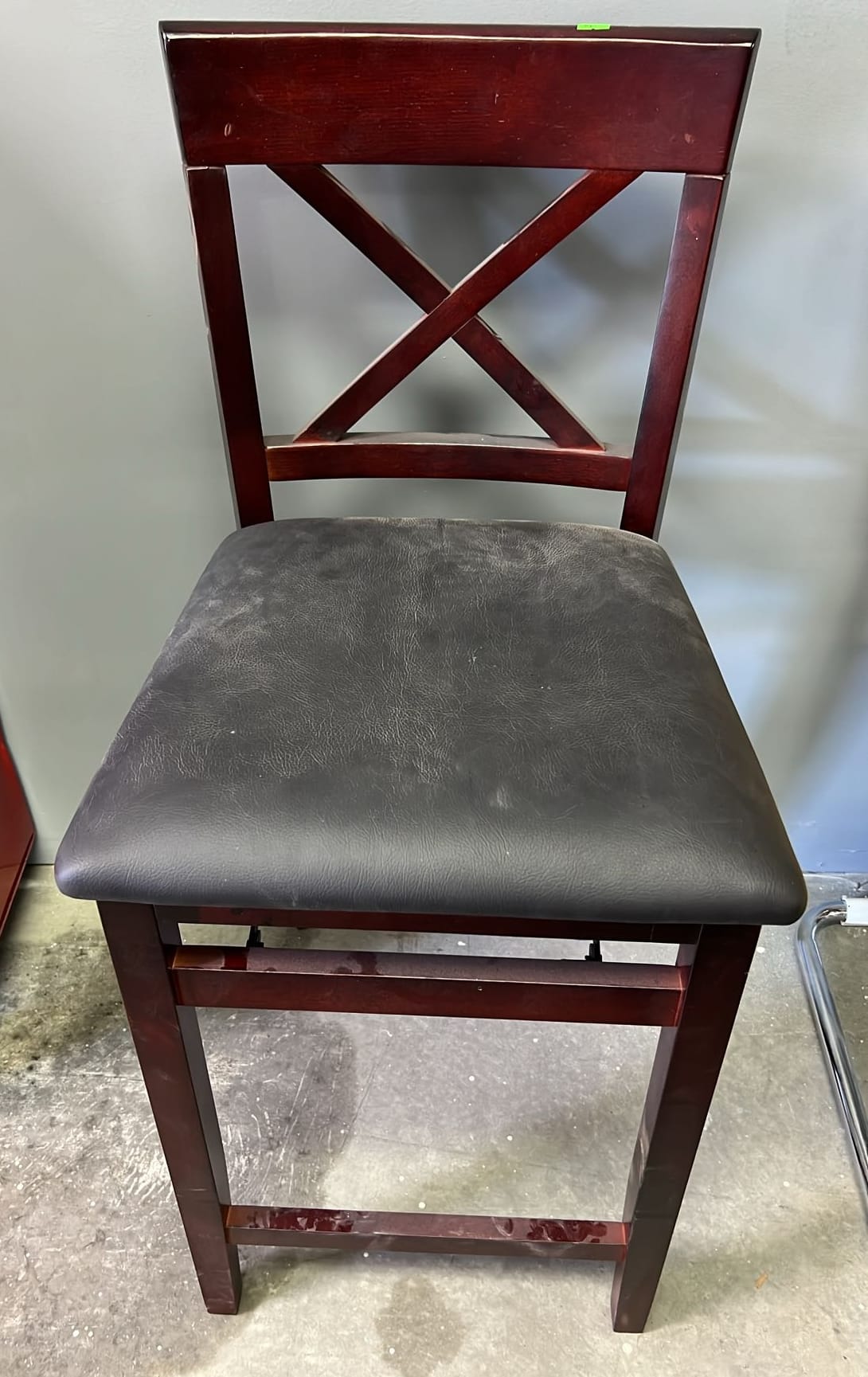 21 Wood Padded Bar Stool 16.75”W Seat Ht 24. 5” ,folding