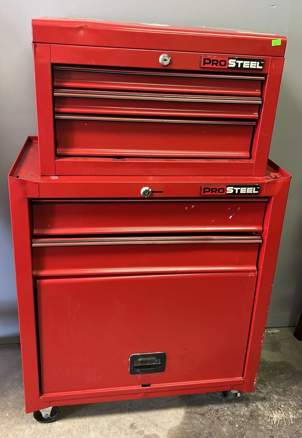 22 ProSteel Roller Tool Chest & Contents inc. Makita Sander, miscellaneous tools