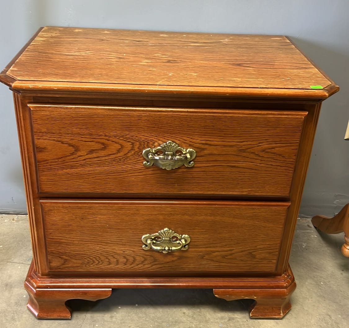 25 Night Stand with Two Drawers 26”x24”x16” (top needs refinished)