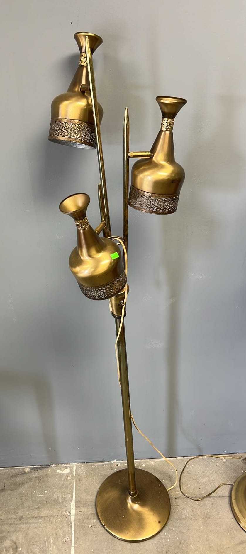 27 Modernist Era Hollywood Regency Metal Floor Lamp 3 Adjustable shades 61.5”