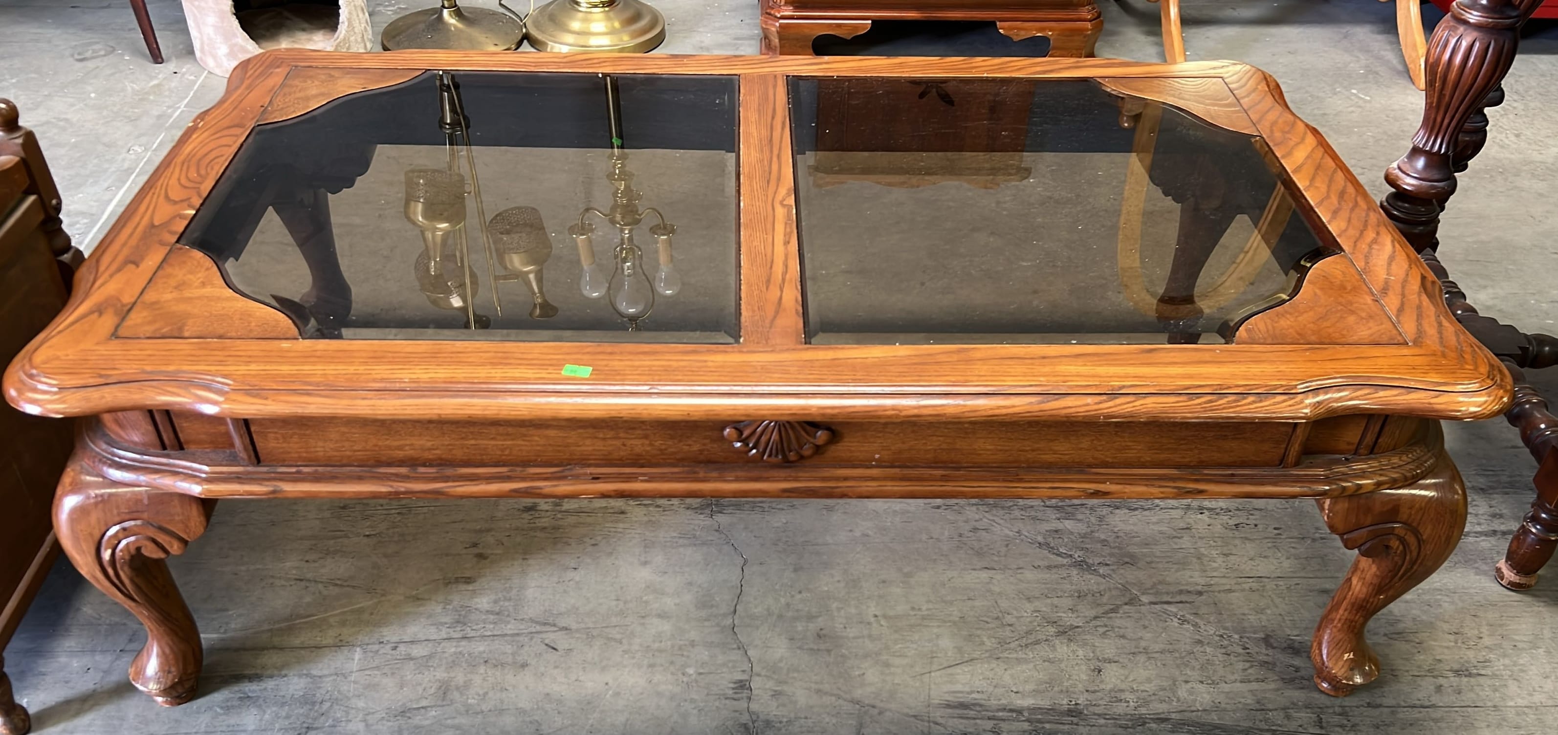 34 Glass Top Wood Coffee Table 49”x15.5”x28”