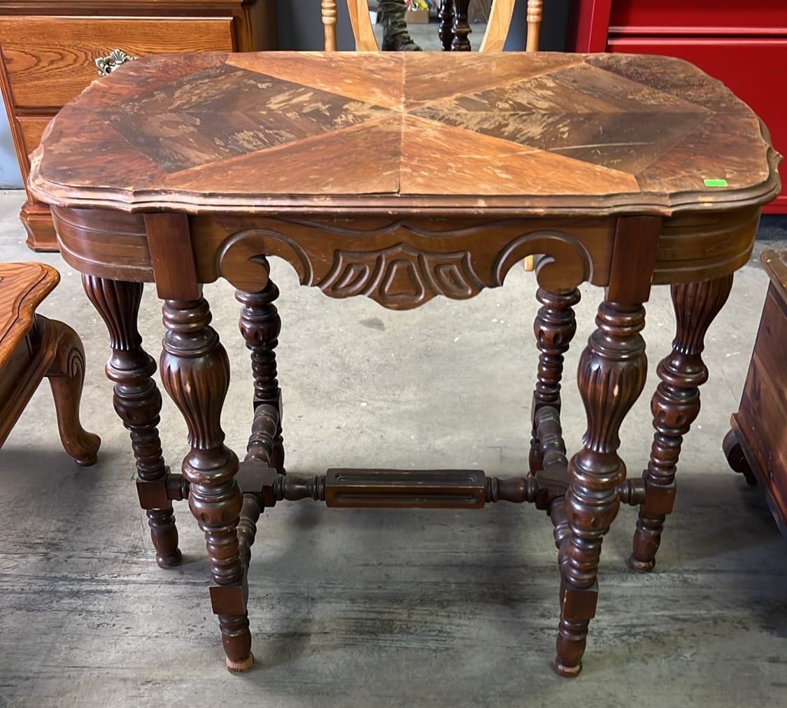 35 Ornate Parlor Table (needs refinished) 34”x29.25” 21”