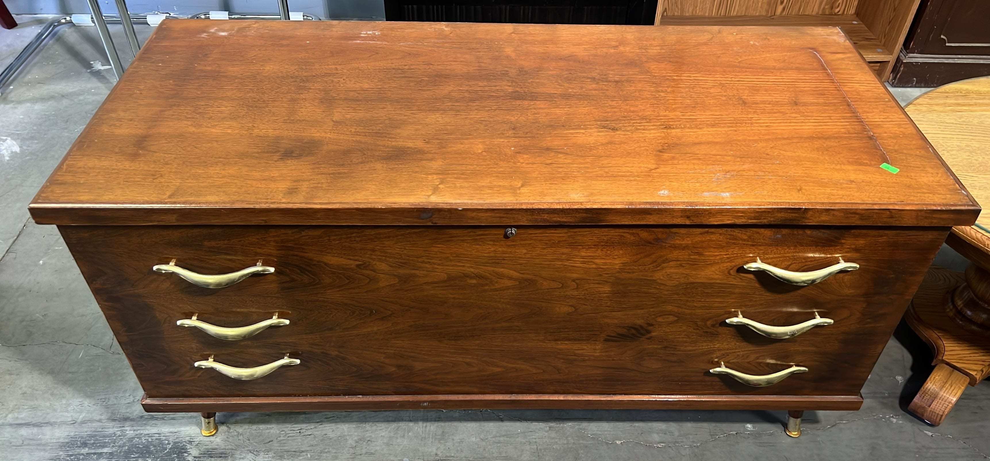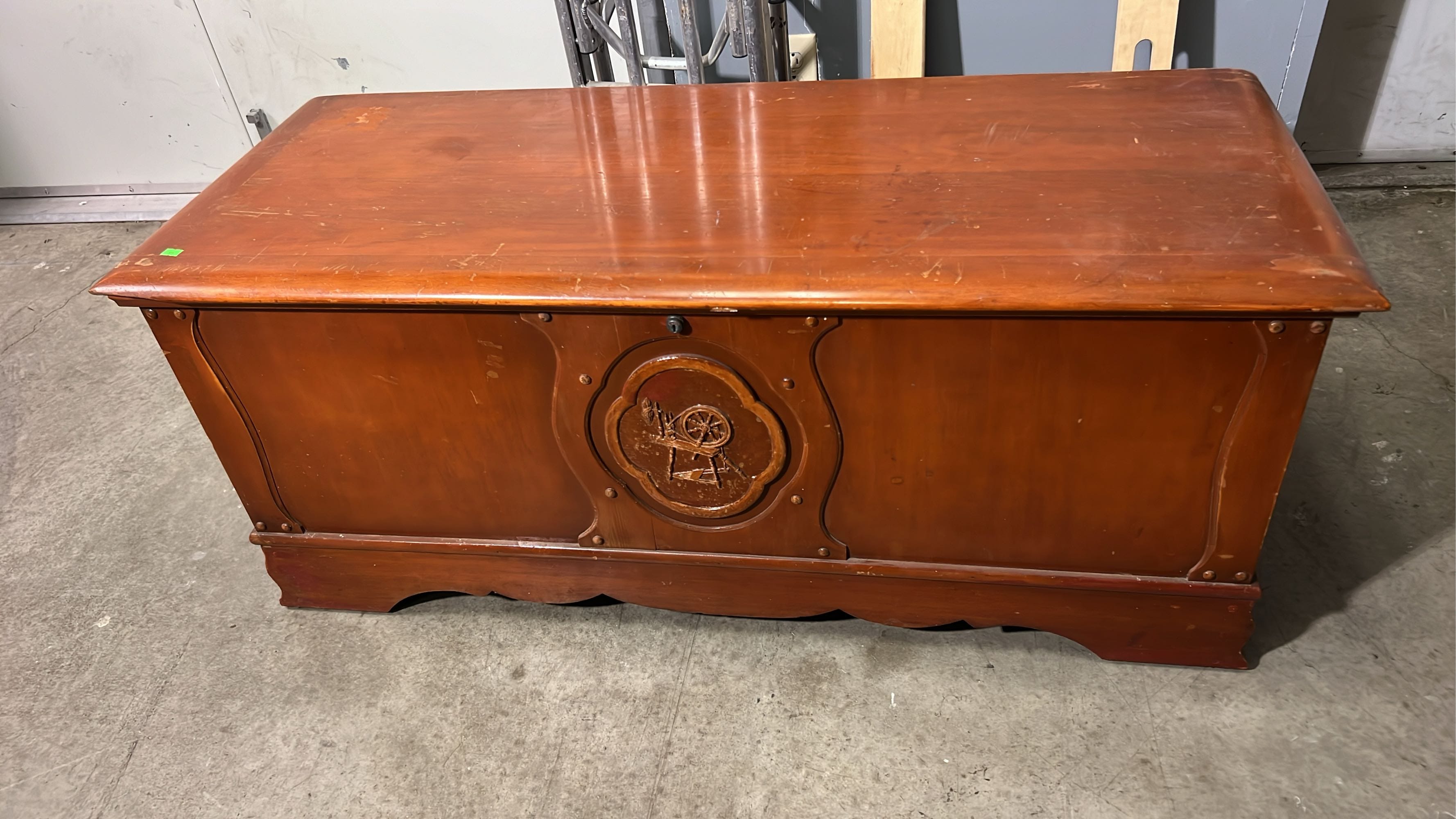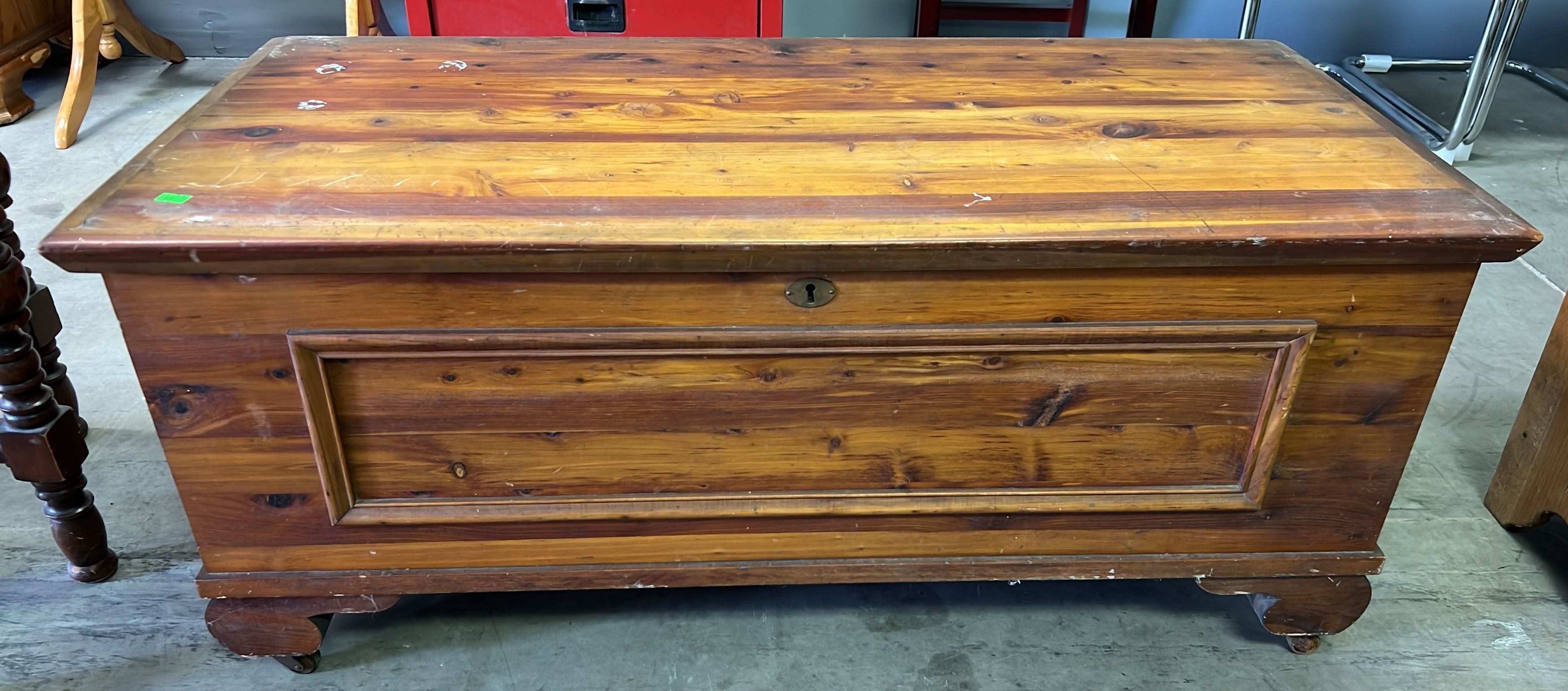 50 Lane Cedar Chest with Three Section Tray - looks like it has a piece of wood split off on underneath edge 48.75”x21”x19.5”
