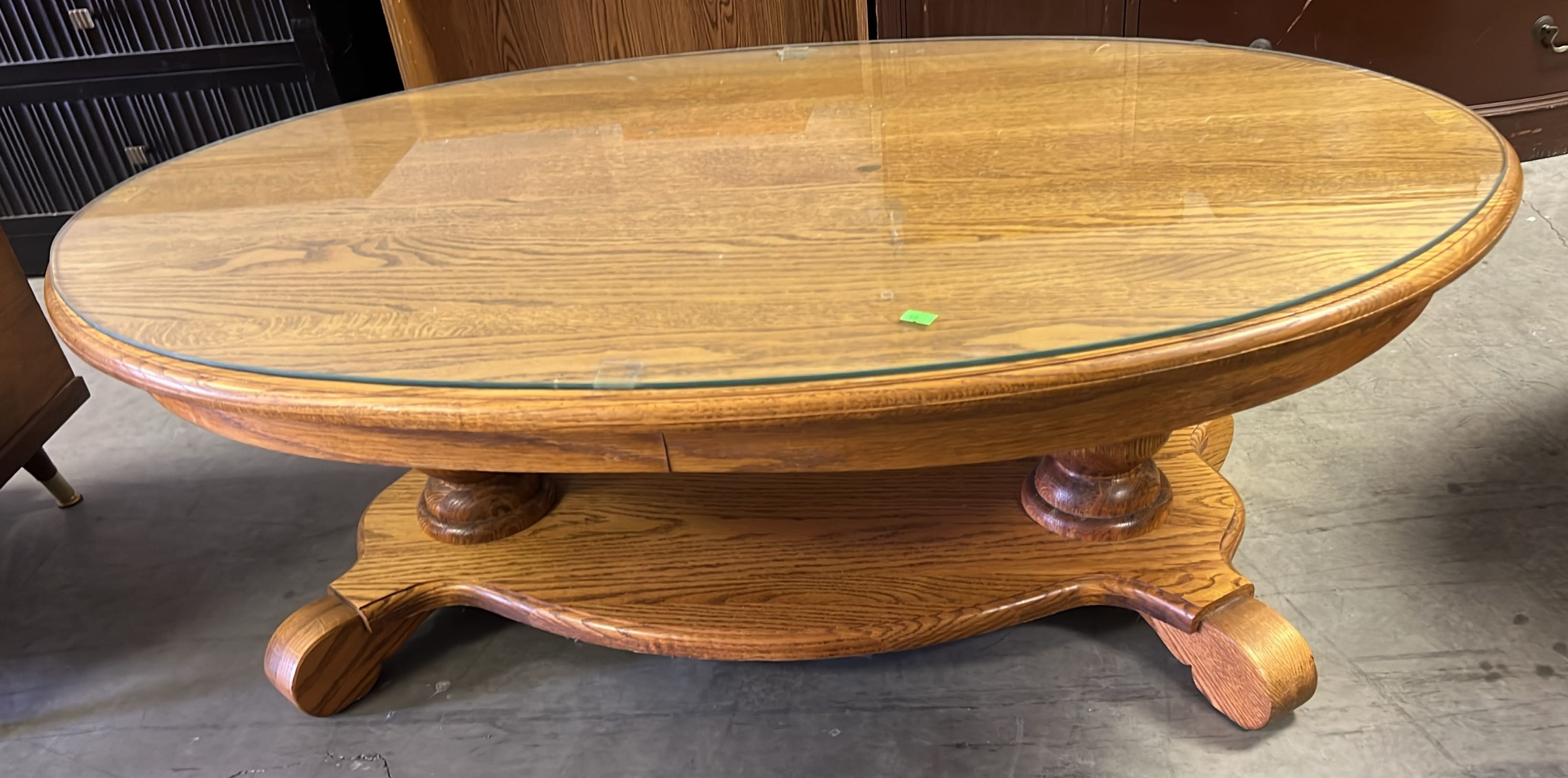 40 Oak Oval Coffee Table with Glass Protector 47.25”x17”x28.75”