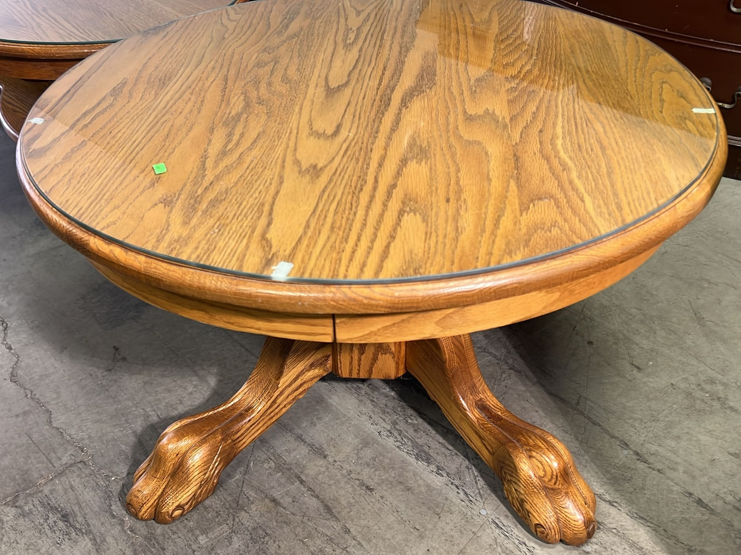 41 Oak Round Clawfoot Coffee Table with Glass Protector 36”