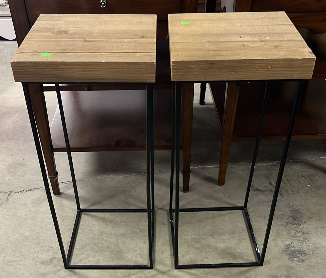 43 Two - Metal Frame Plant Stands with Wood Tops 12”x27”x12”