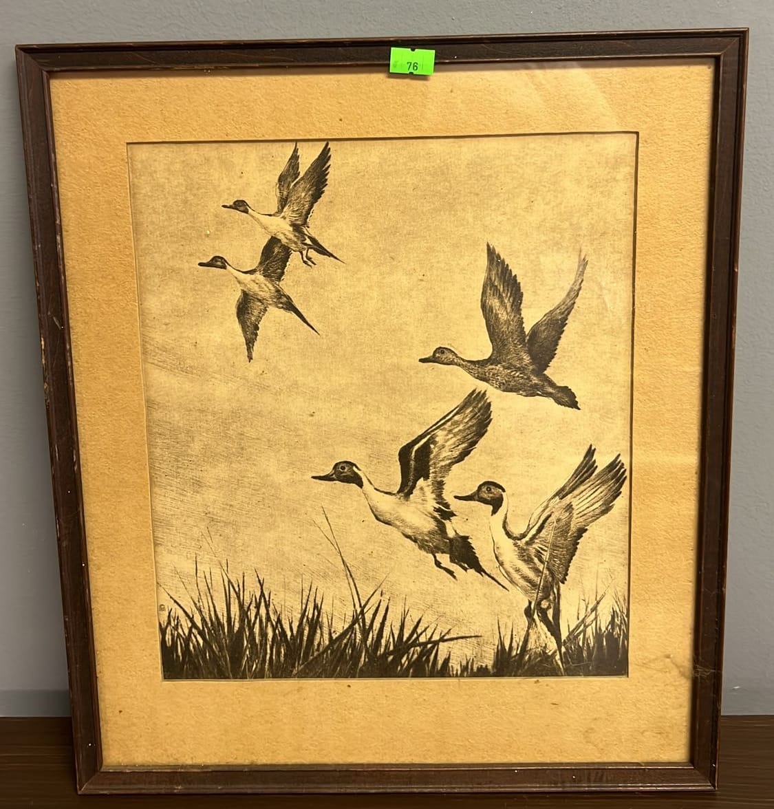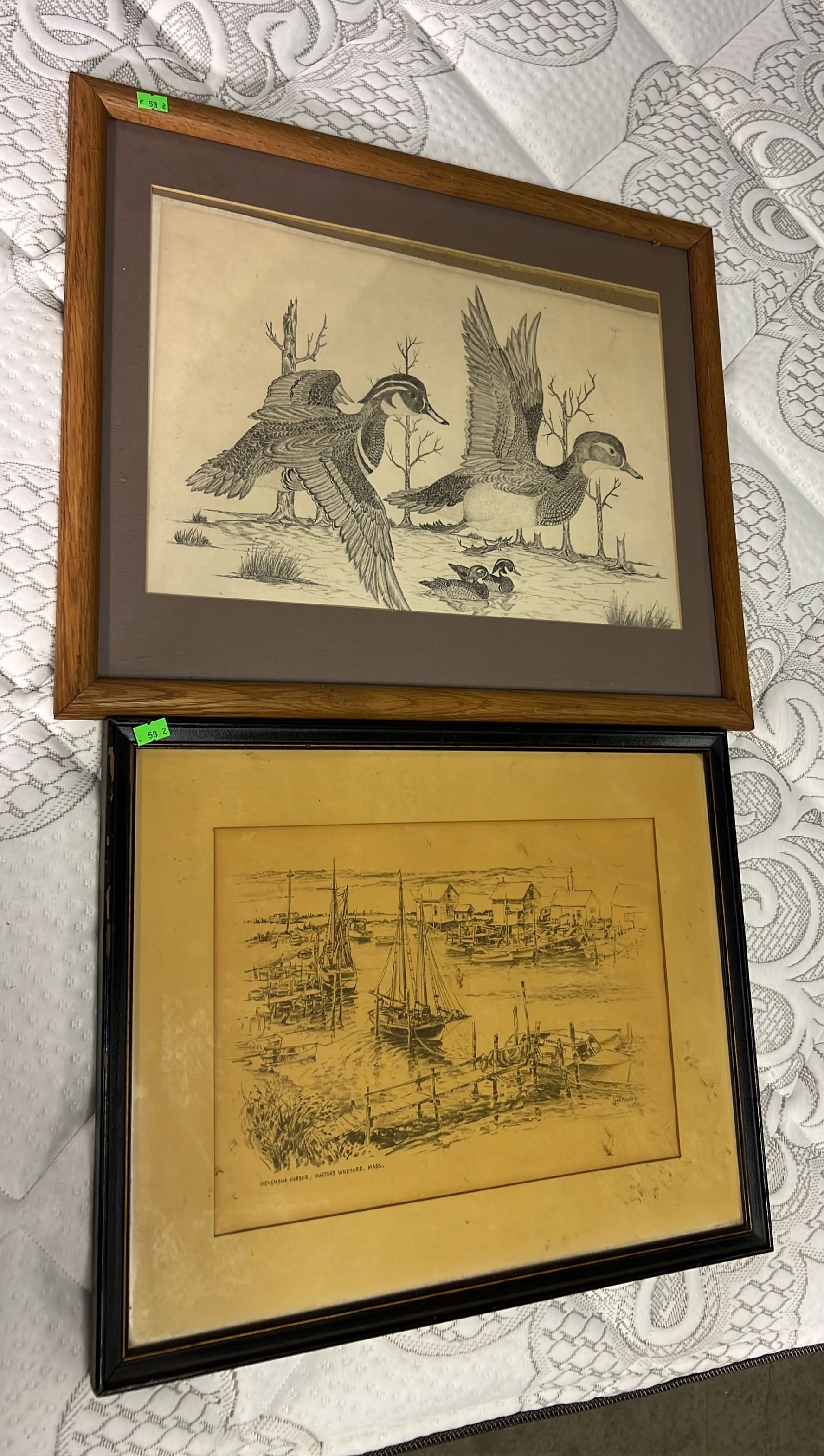 53 Two - Framed Pictures - Menemsha Harbor, Martha’s Vineyard, Mass. by Jas F. Murray 19”x15” & Ducks Picture 21.5”x17.5”