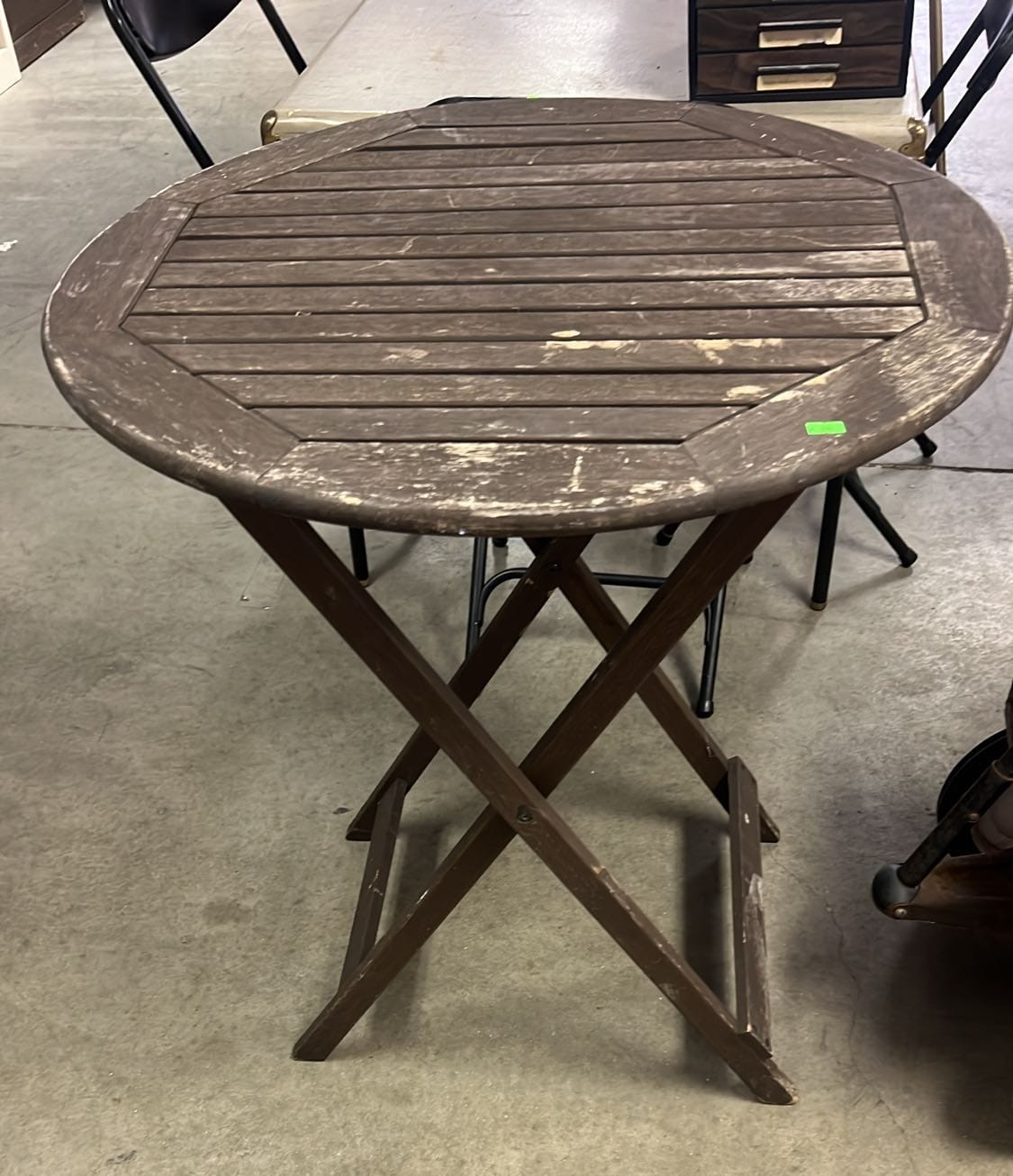 56 Round Wood Patio Table with Criss Cross Legs 27.5”x31”