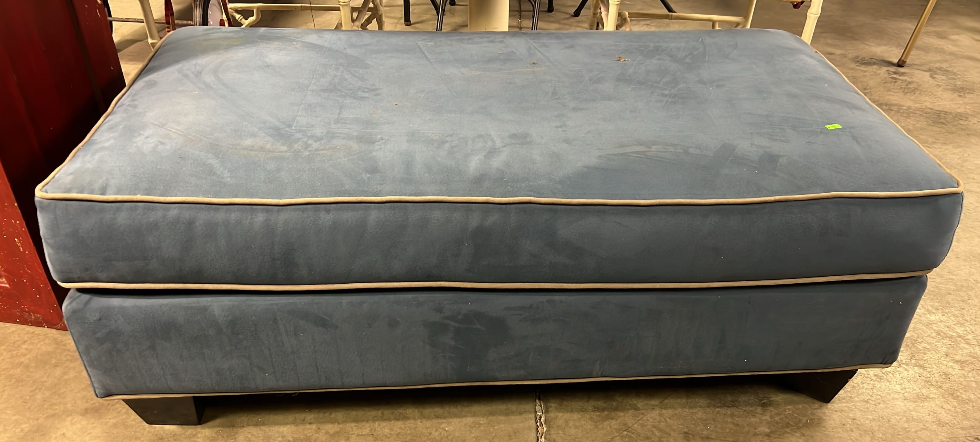 61 Dusty Blue Ottoman with Beige Cording 49”x17”x26.25”