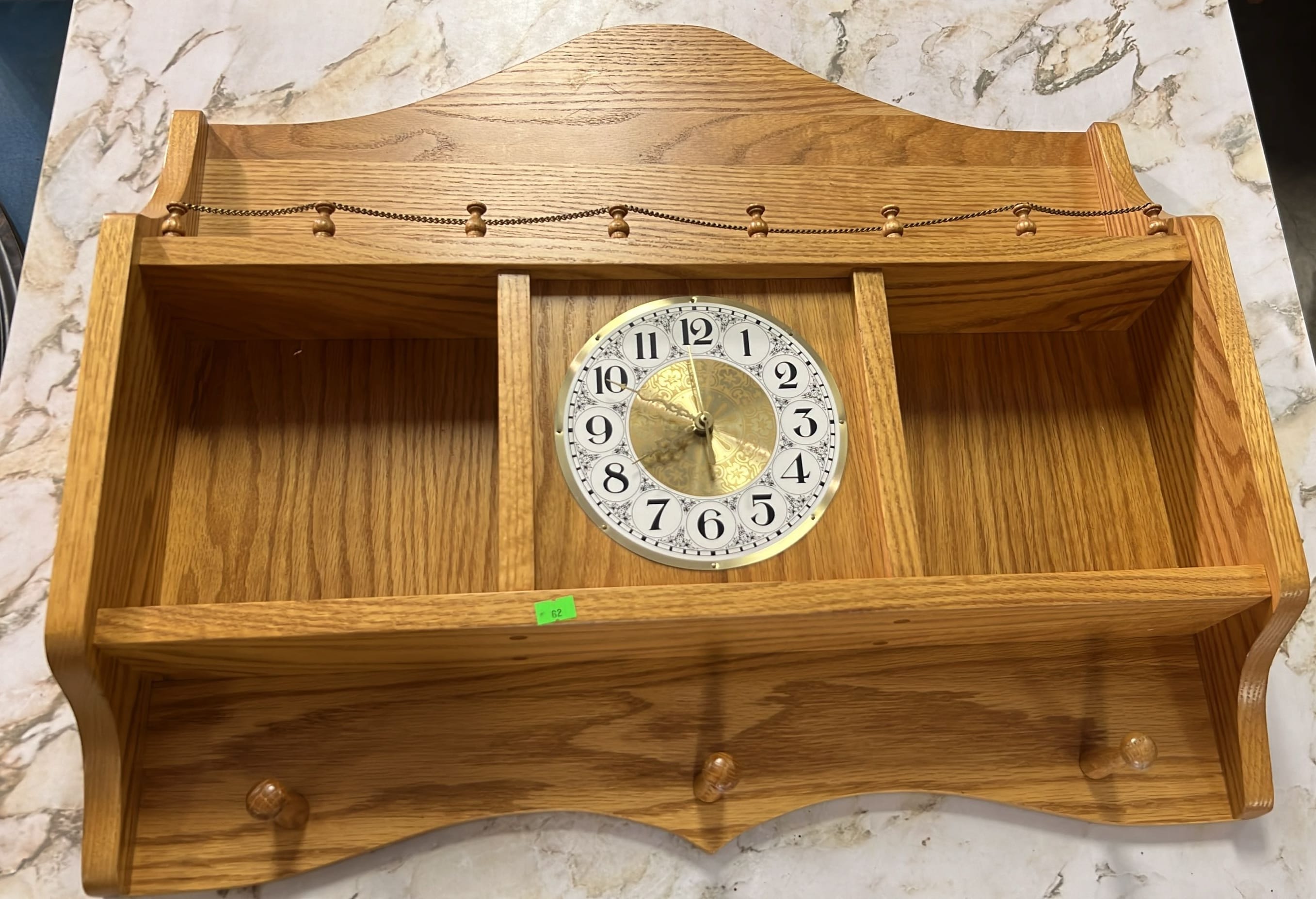 62 Oak Wall Shelf with Clock 27”x24”x5”