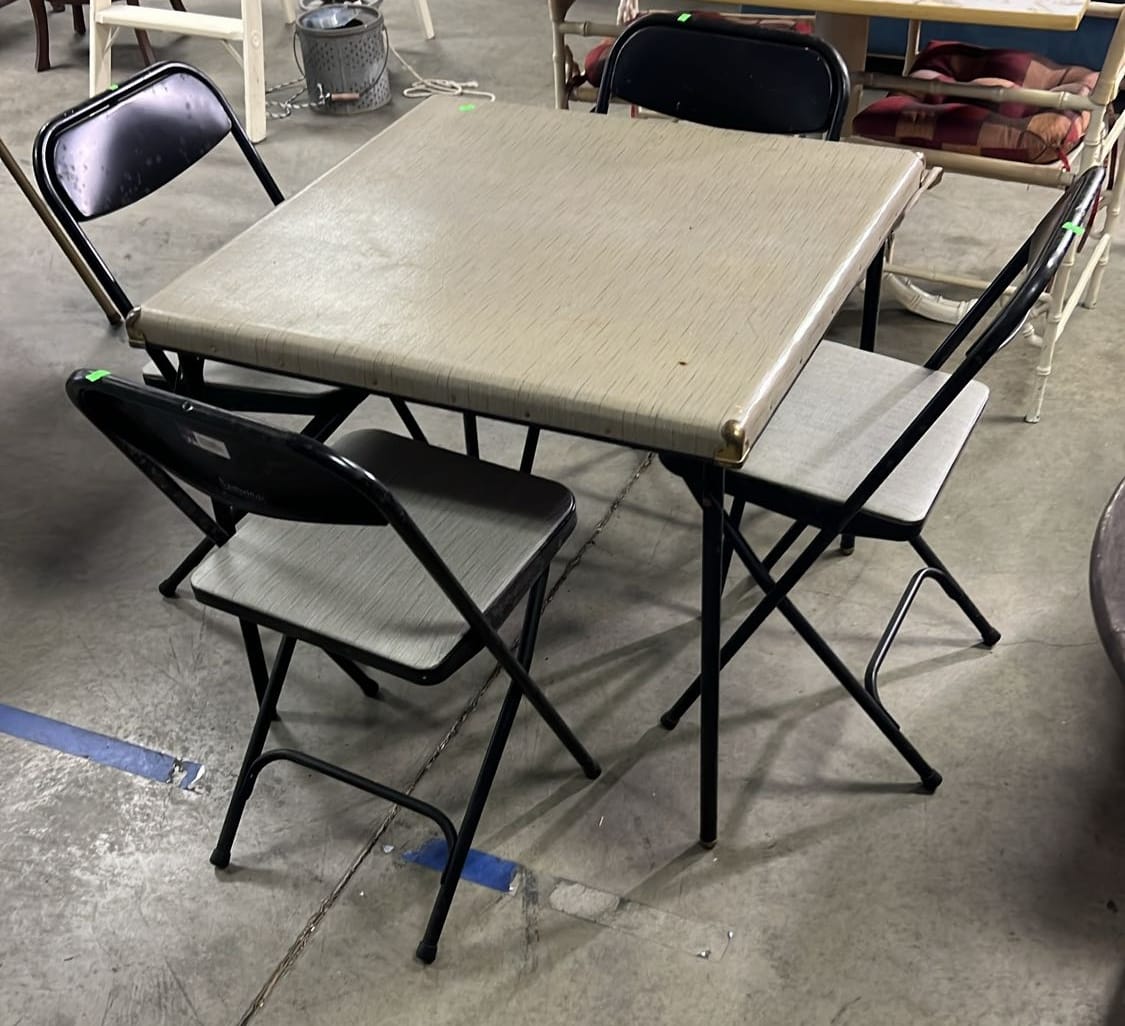 64 Vintage Vintage Samsonite Card Table with Four Folding Chairs 30”x26.25”