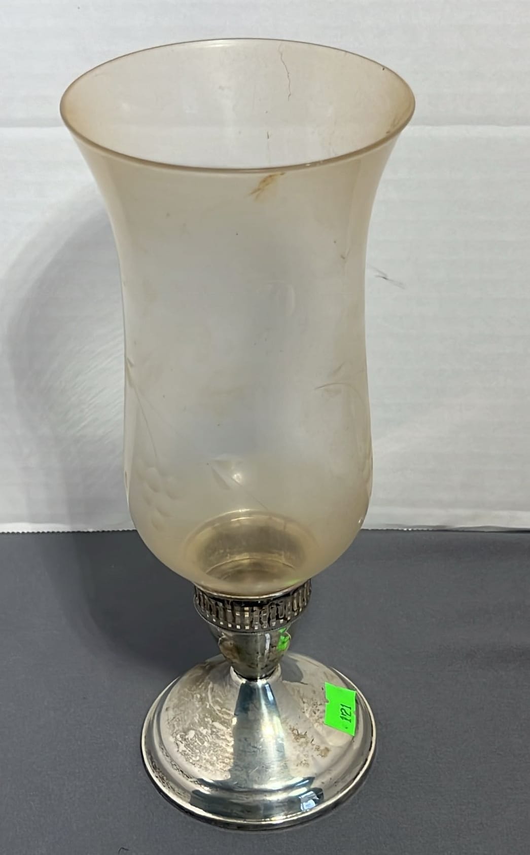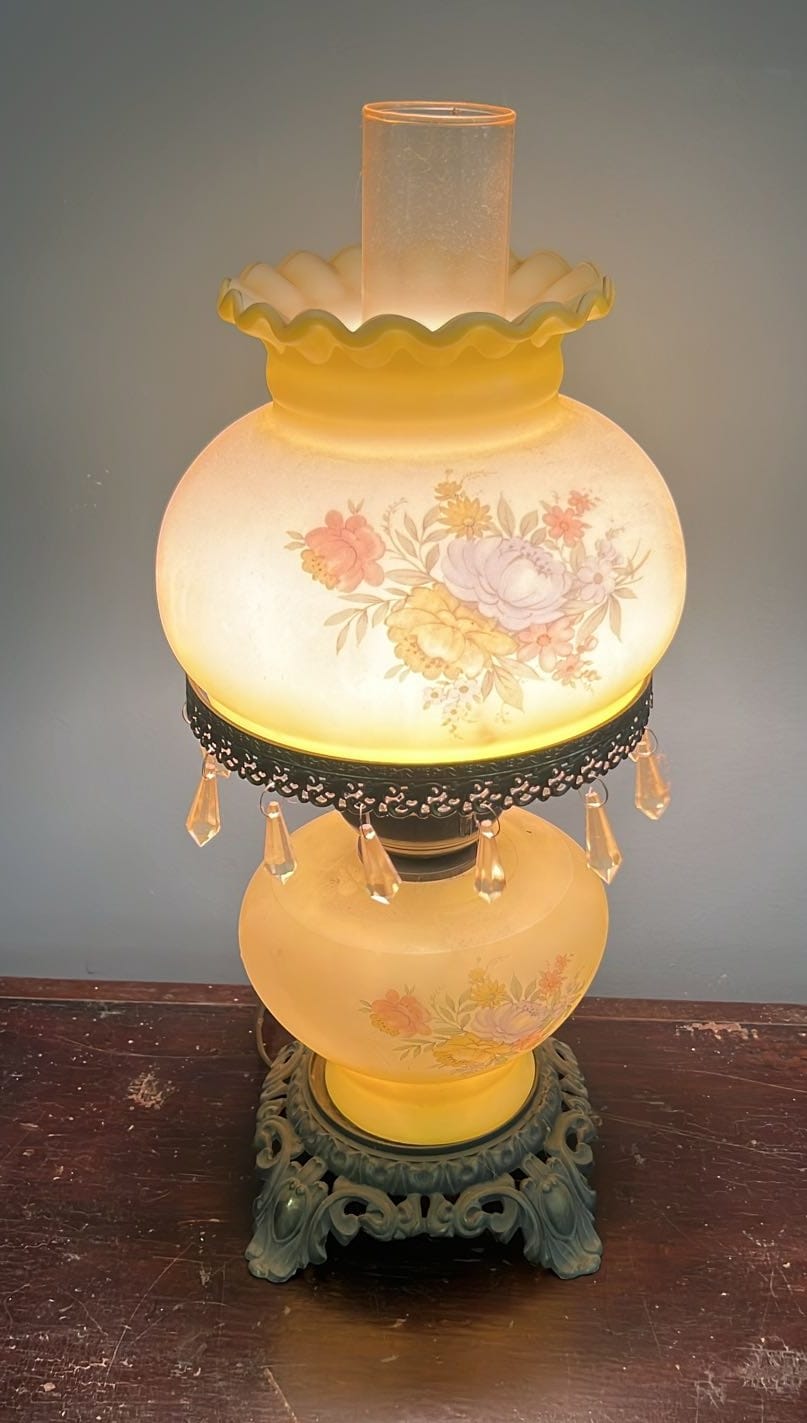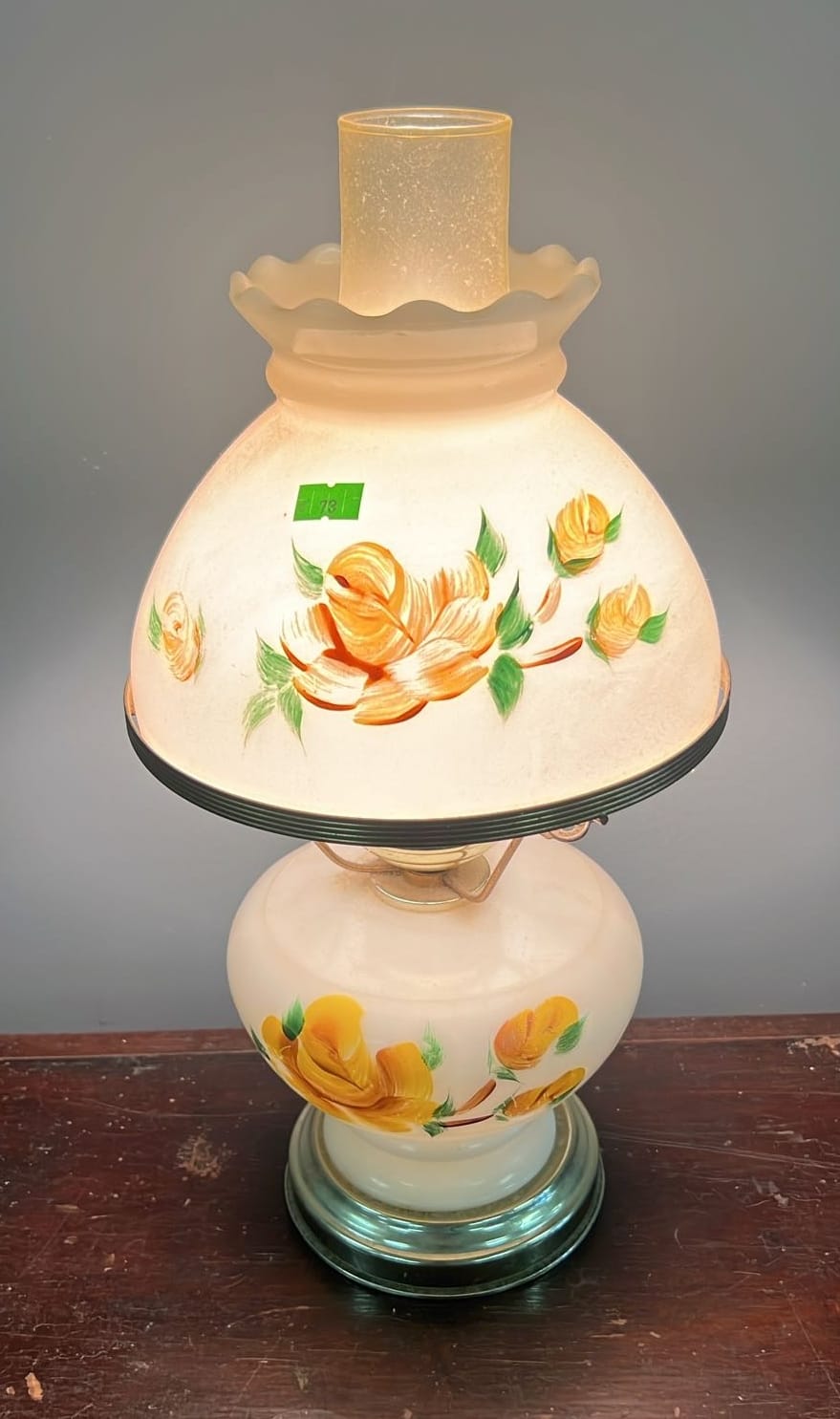 73 Vintage Milk Glass Hand Painted Floral Hurricane Lamp 16”