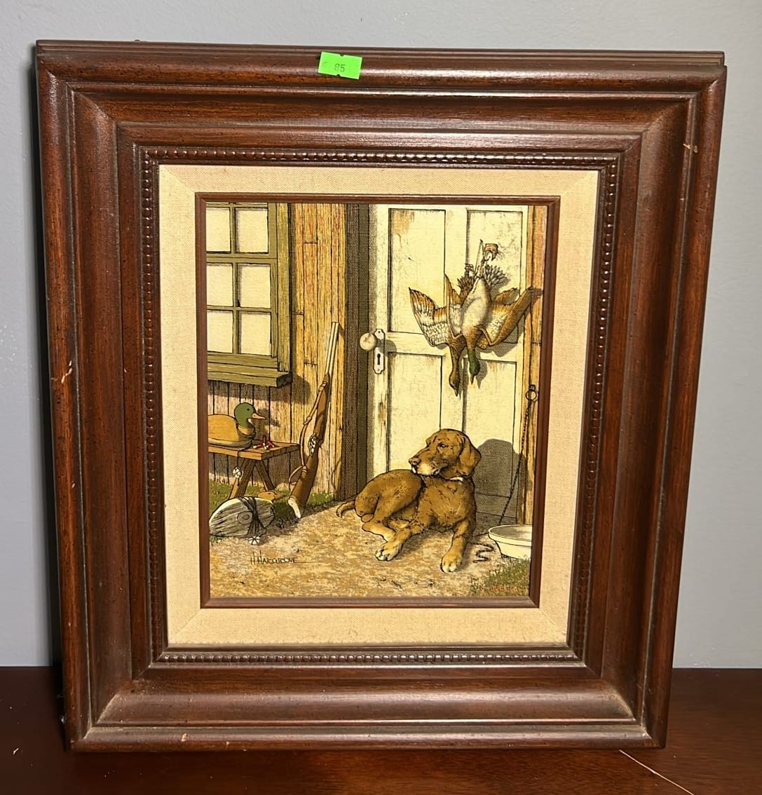 85 Framed Canvas Painting by H. Hargrove “After The Hunt” 14.5”x16.5”
