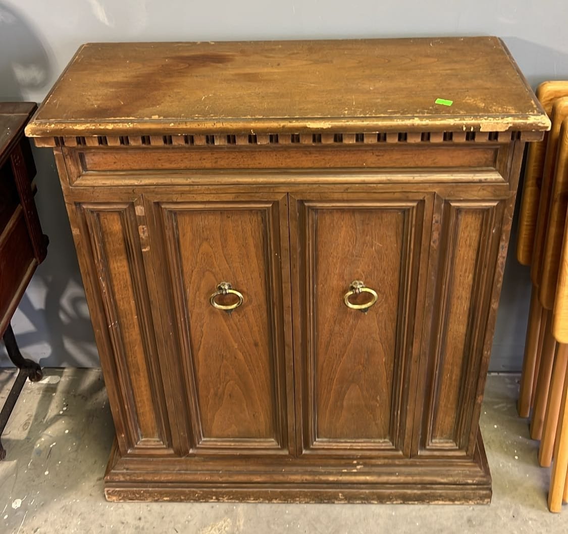 92 Baker Furniture Two-Door Cabinet 27.5”x32.25”x11” (needs refinished)