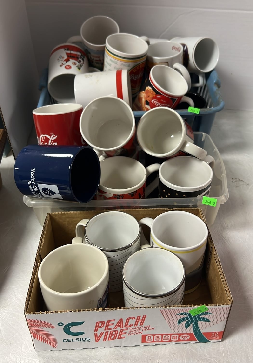 256 Coffee Cup Assortment 3.5”- 4.5” (see photos) • Totes 8”, 10”