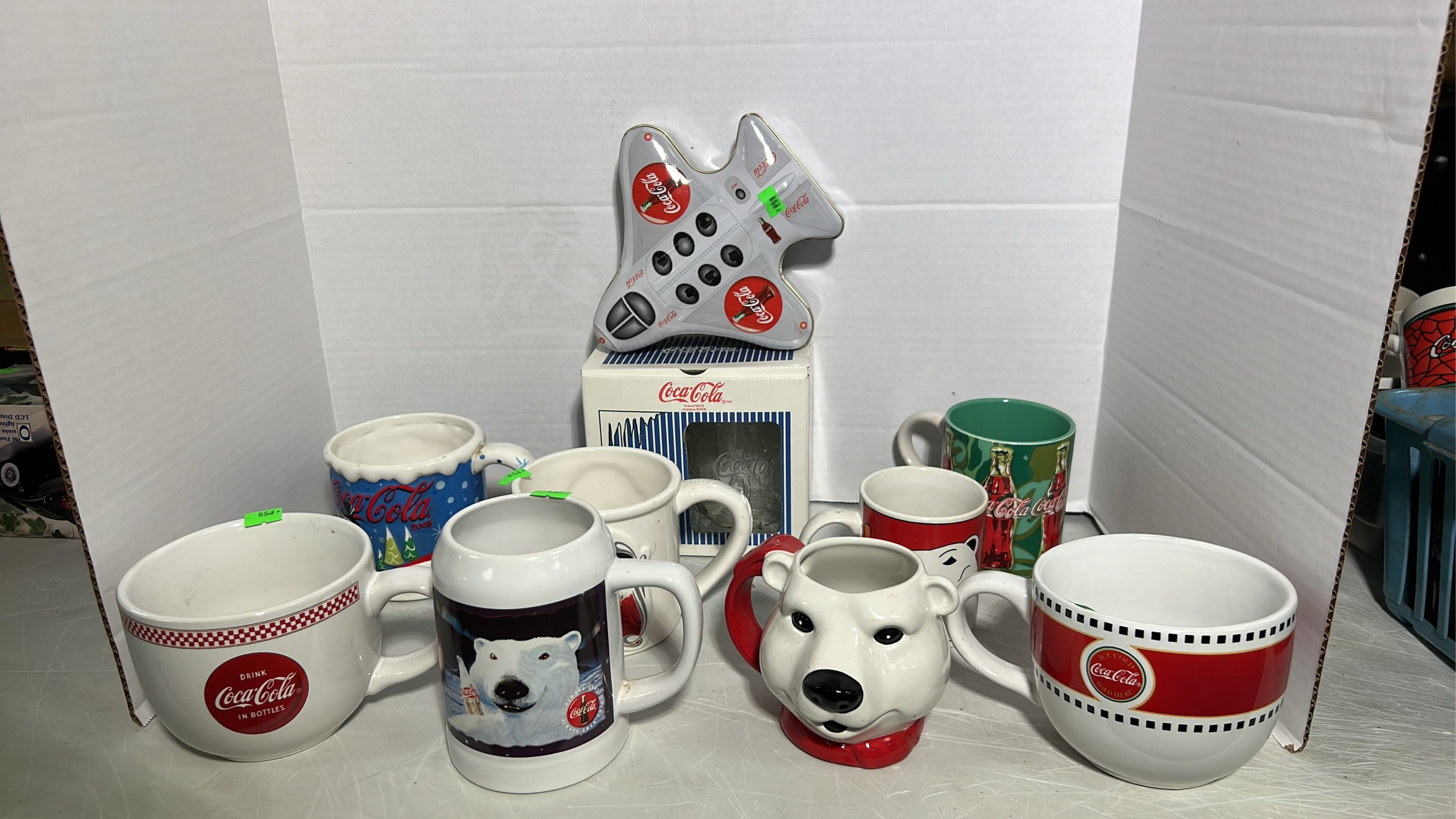 259 Coca-Cola Mug assortment 3.75” - 5.25” (see photos) • Coca-Cola Plane Tin