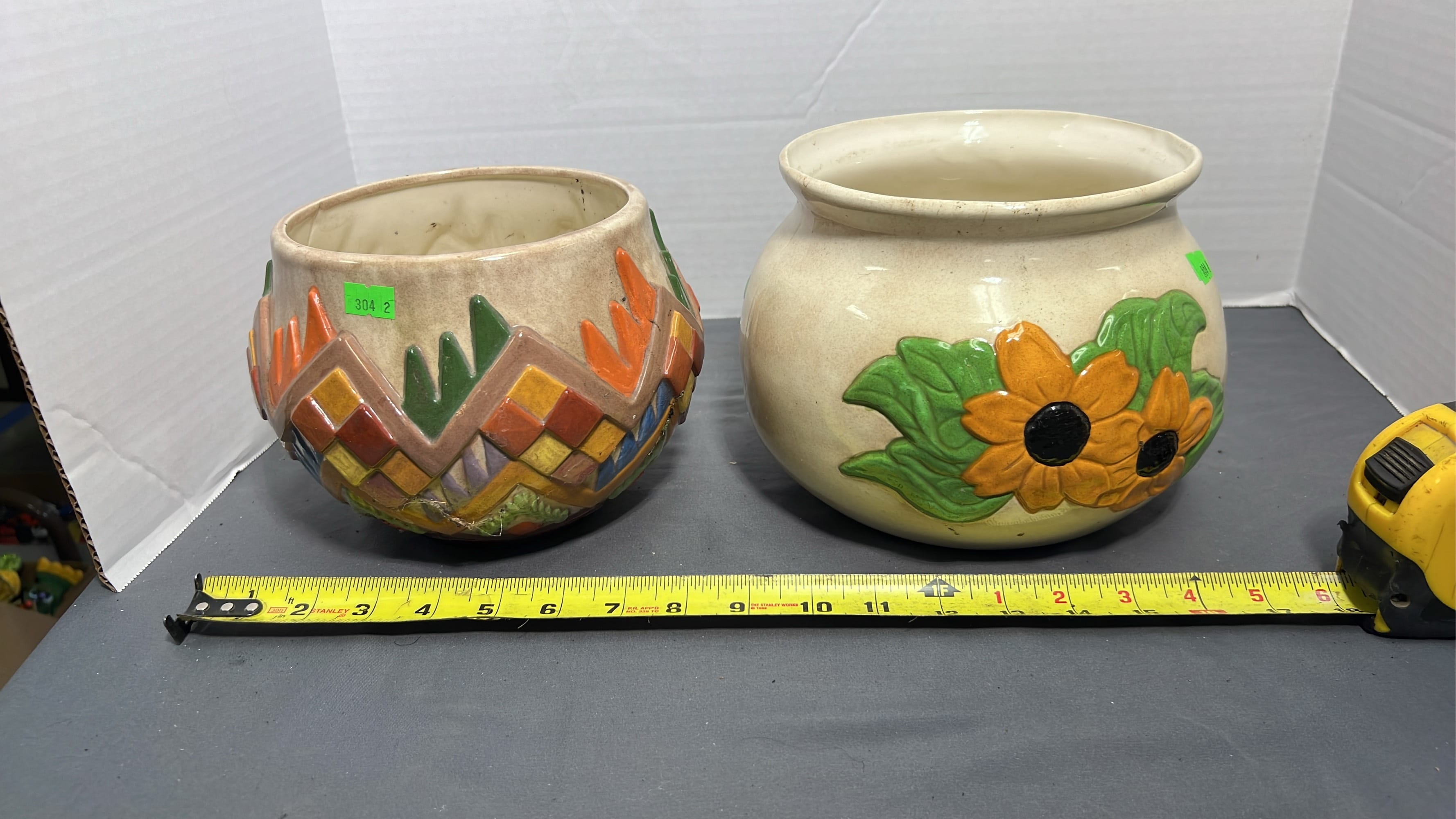304 Atlantic Mold Planter 6” & Great Plains Floral Planter 7”