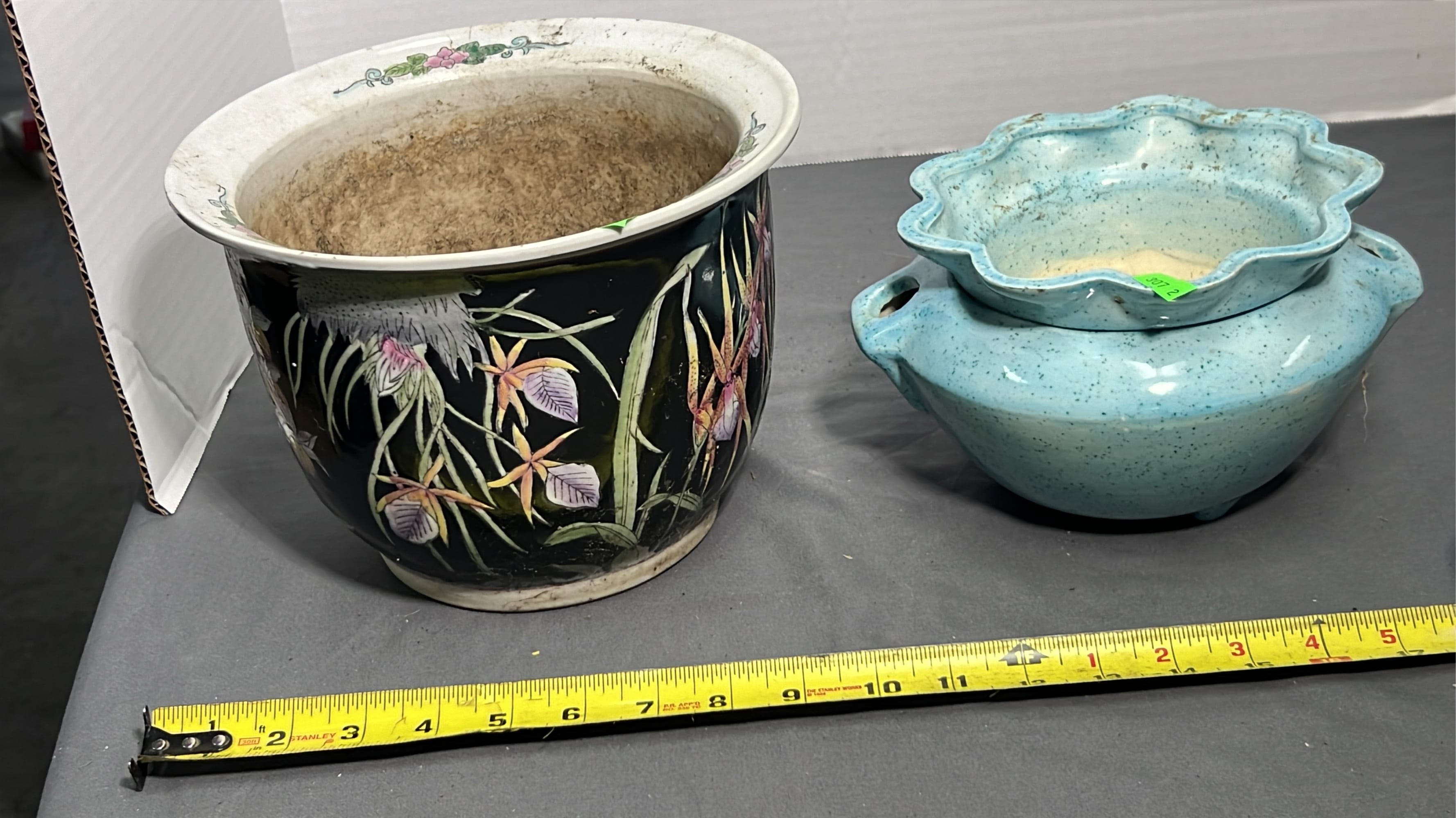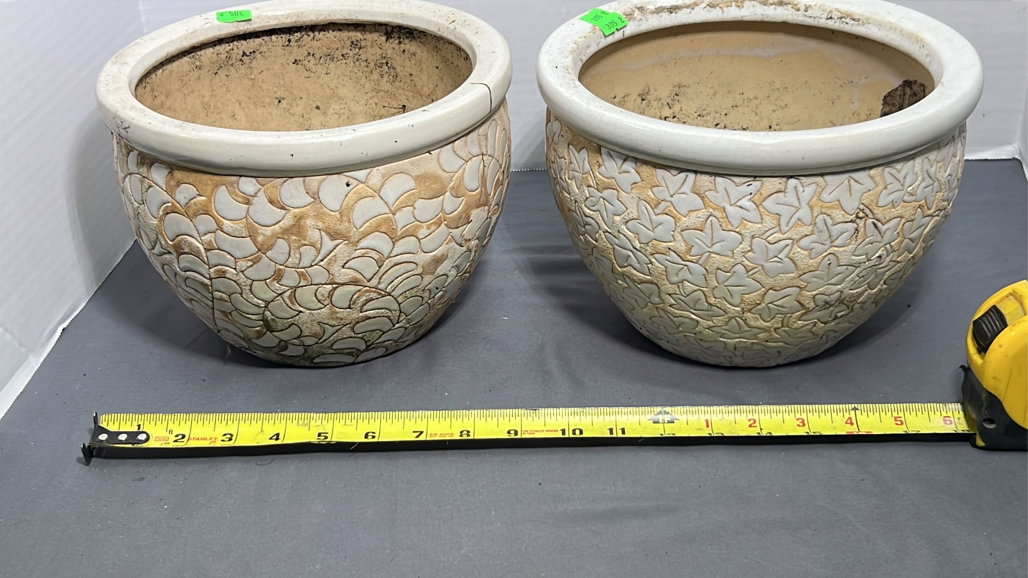 308 Fern Design Flower Pot 8.5” • Two - Ceramic Flower Pots 7”