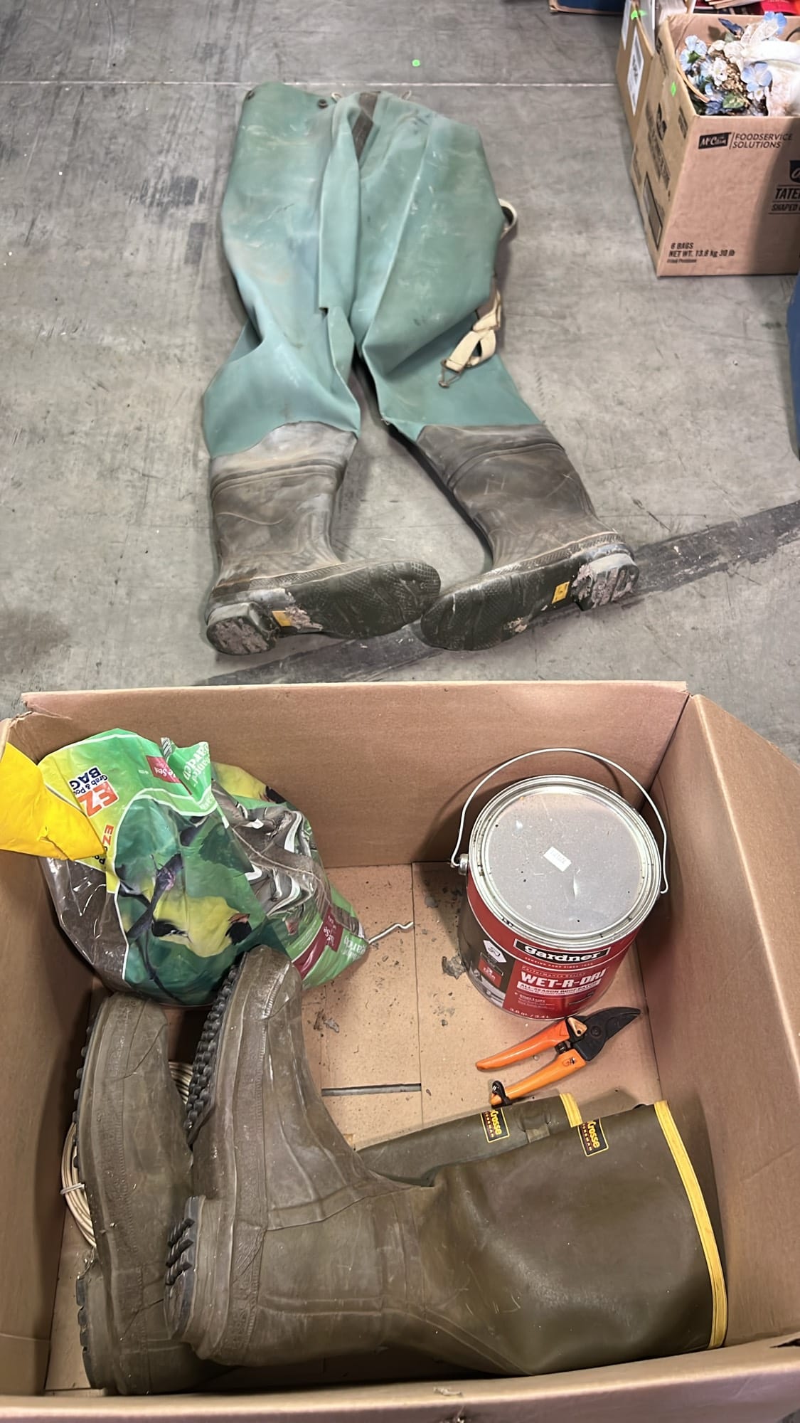 326 Enchanted Garden Thistle Seed Partial • LaCrosse Rubber Boots Size unknown • Chest Waders Size 9 (has hole)