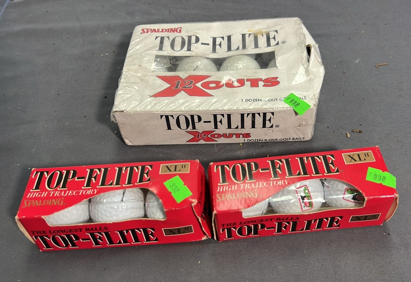 332 Two - 3 Packs Top Flite XL Golf Balls in box • Spalding Top-Flite 13 Xouts Golf Balls in box