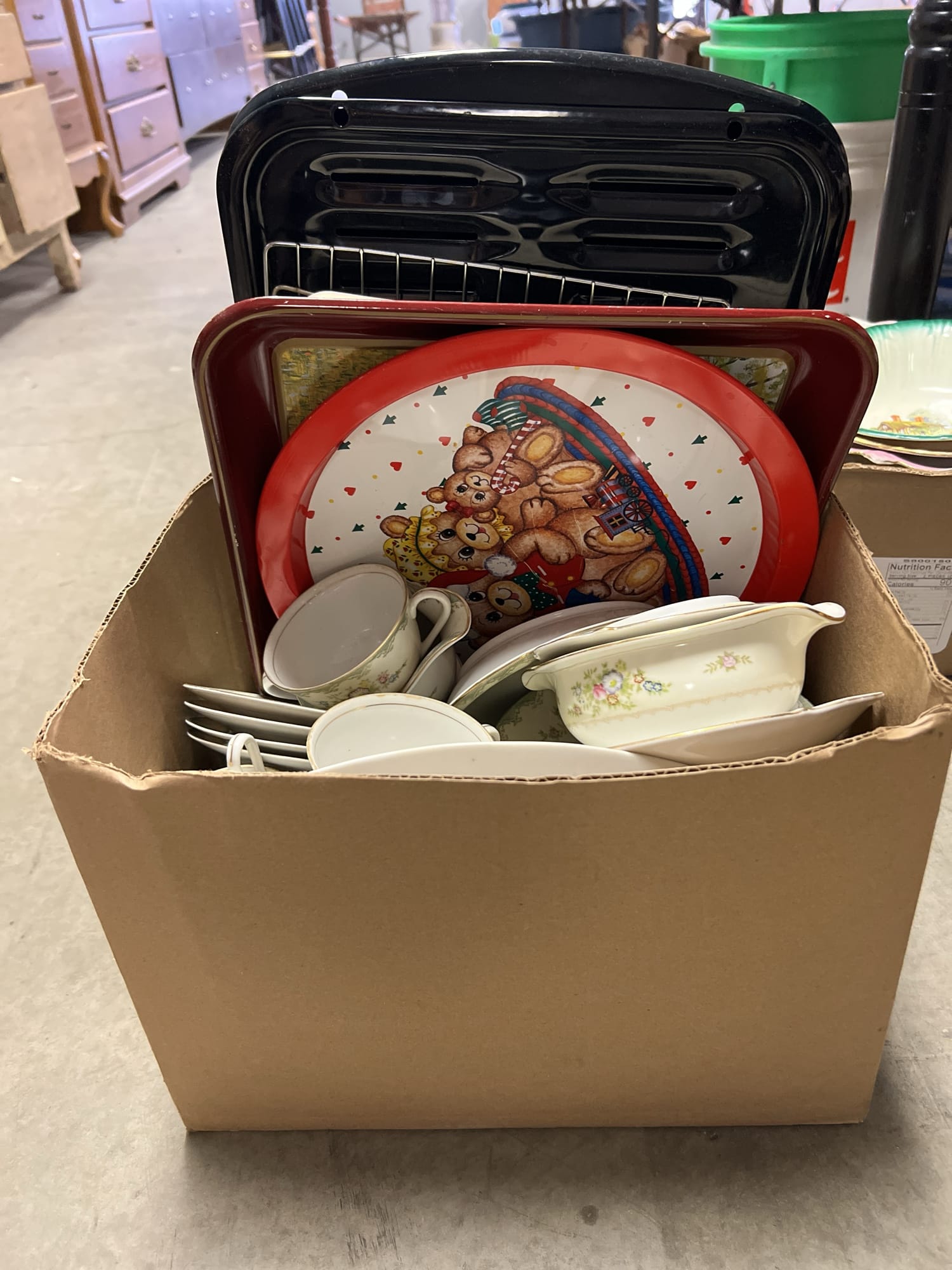 336 Some China Assorted Dinnerware (some have cracks) Broiler Pan • Metal Trays • Metal Cooling Racks (see photos)