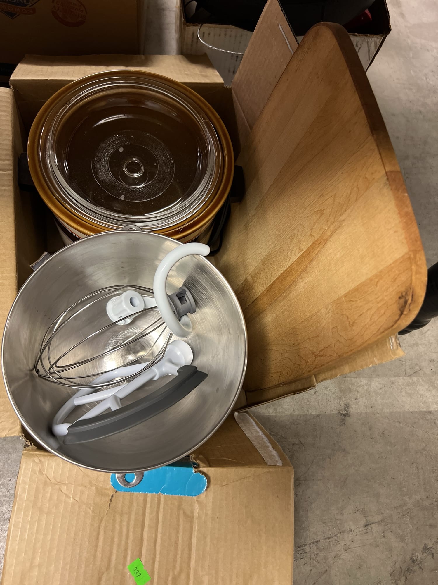 337 Wood Cutting Board 11.75”x15” • KitchenAid Bowl • Beater • Whisk • Doughhook 8.5” • Rival Crock Pot Slow Cooker