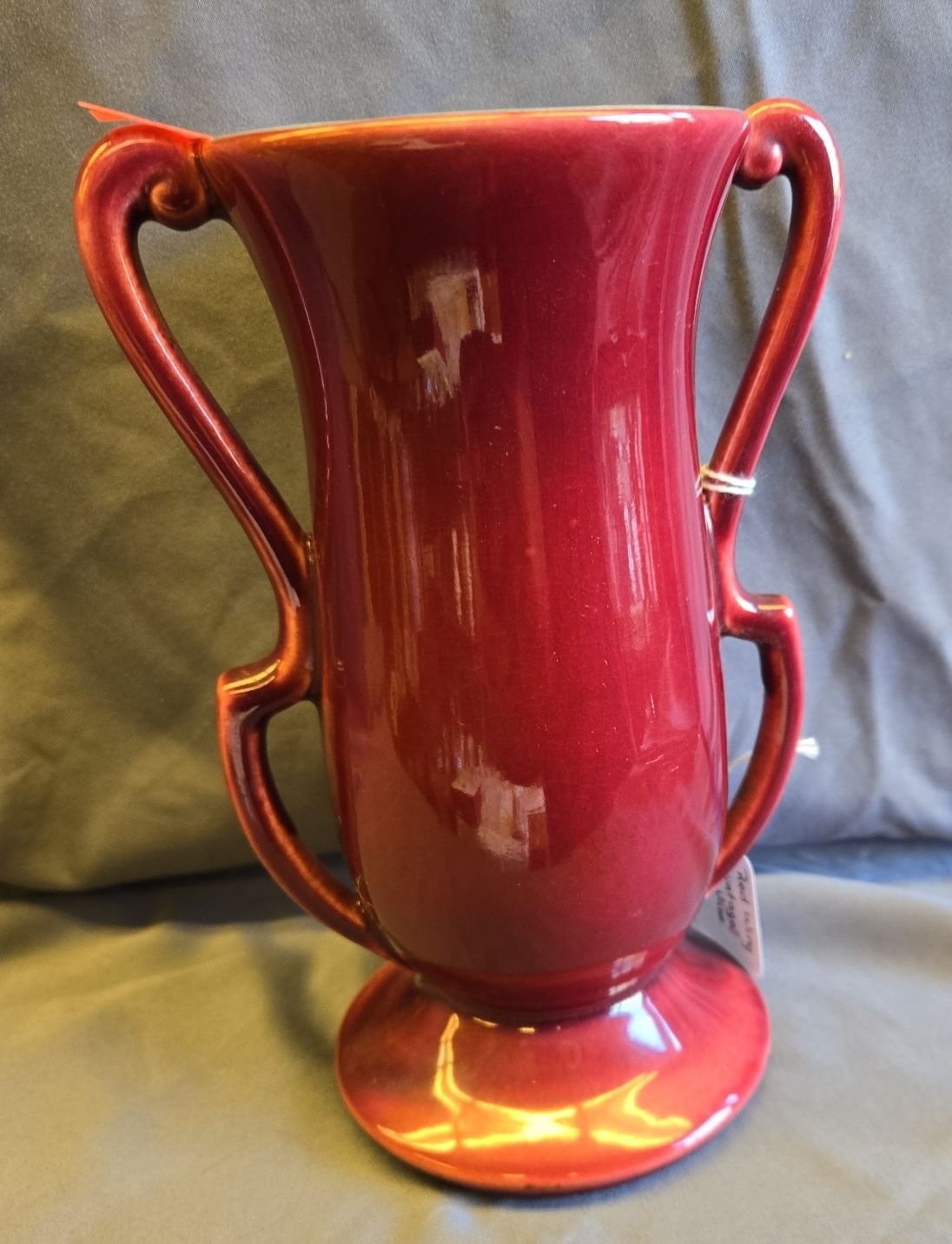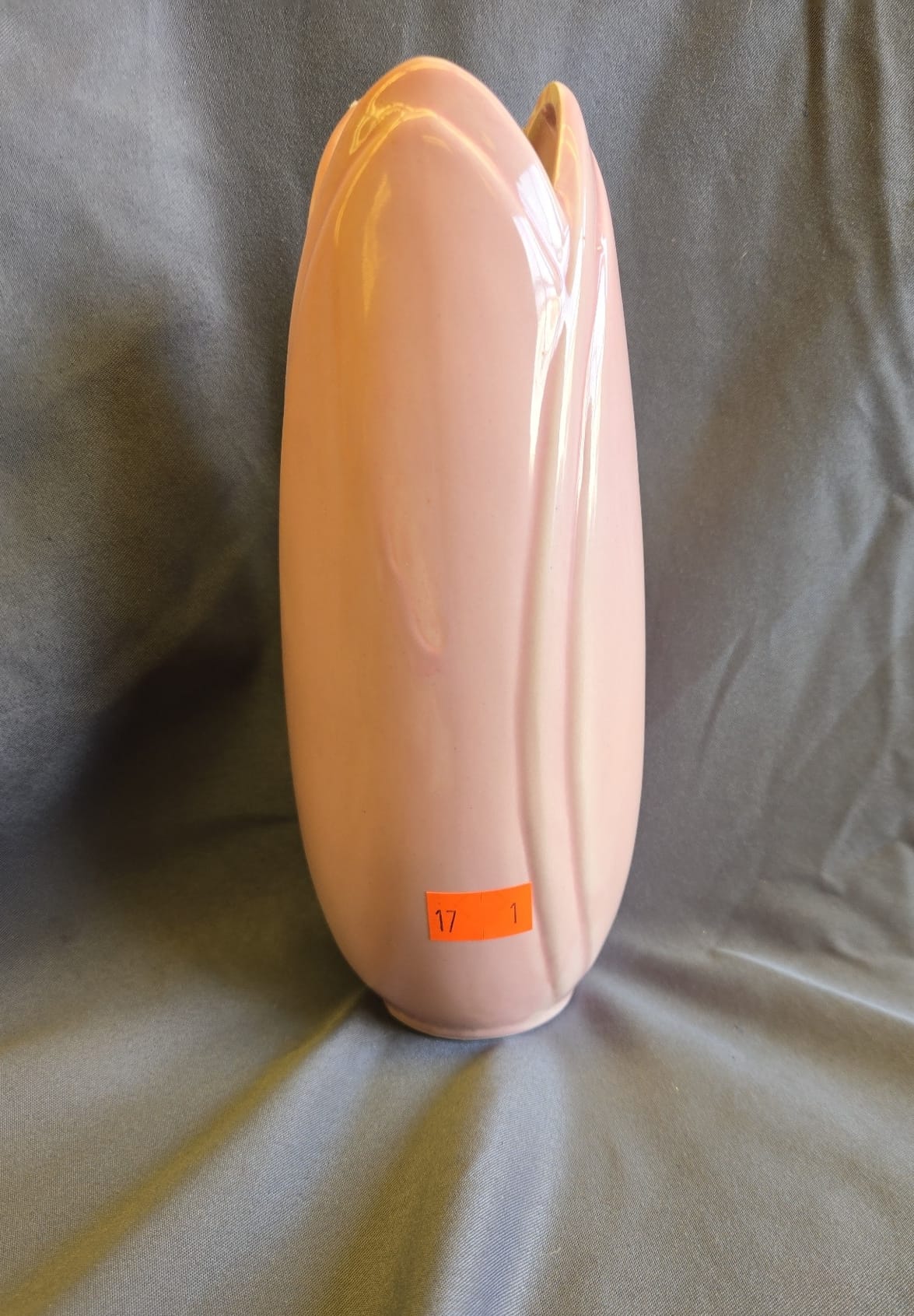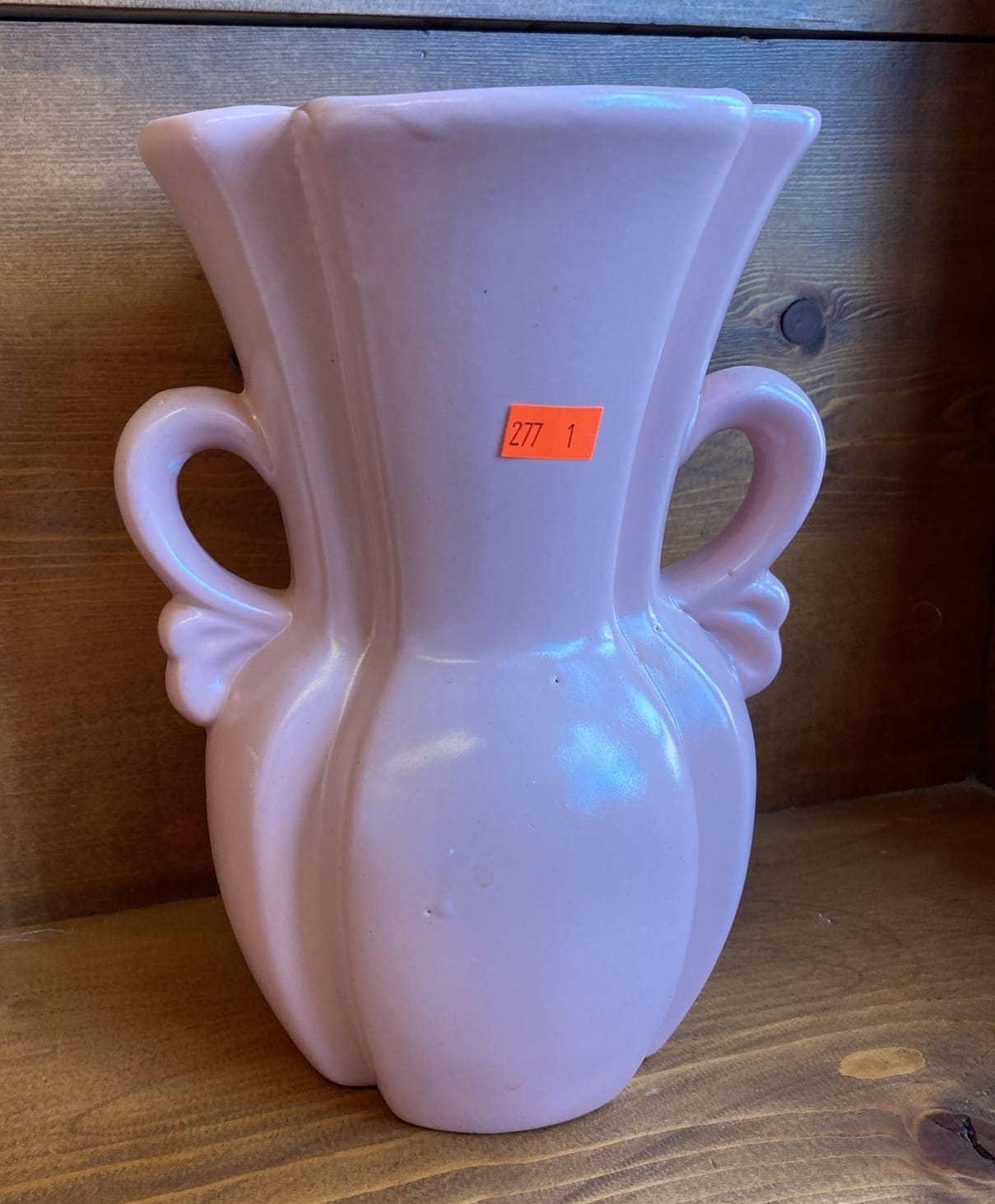 277 Unmarked Haeger Pottery Vase Matte Pink with Double Handle 9”