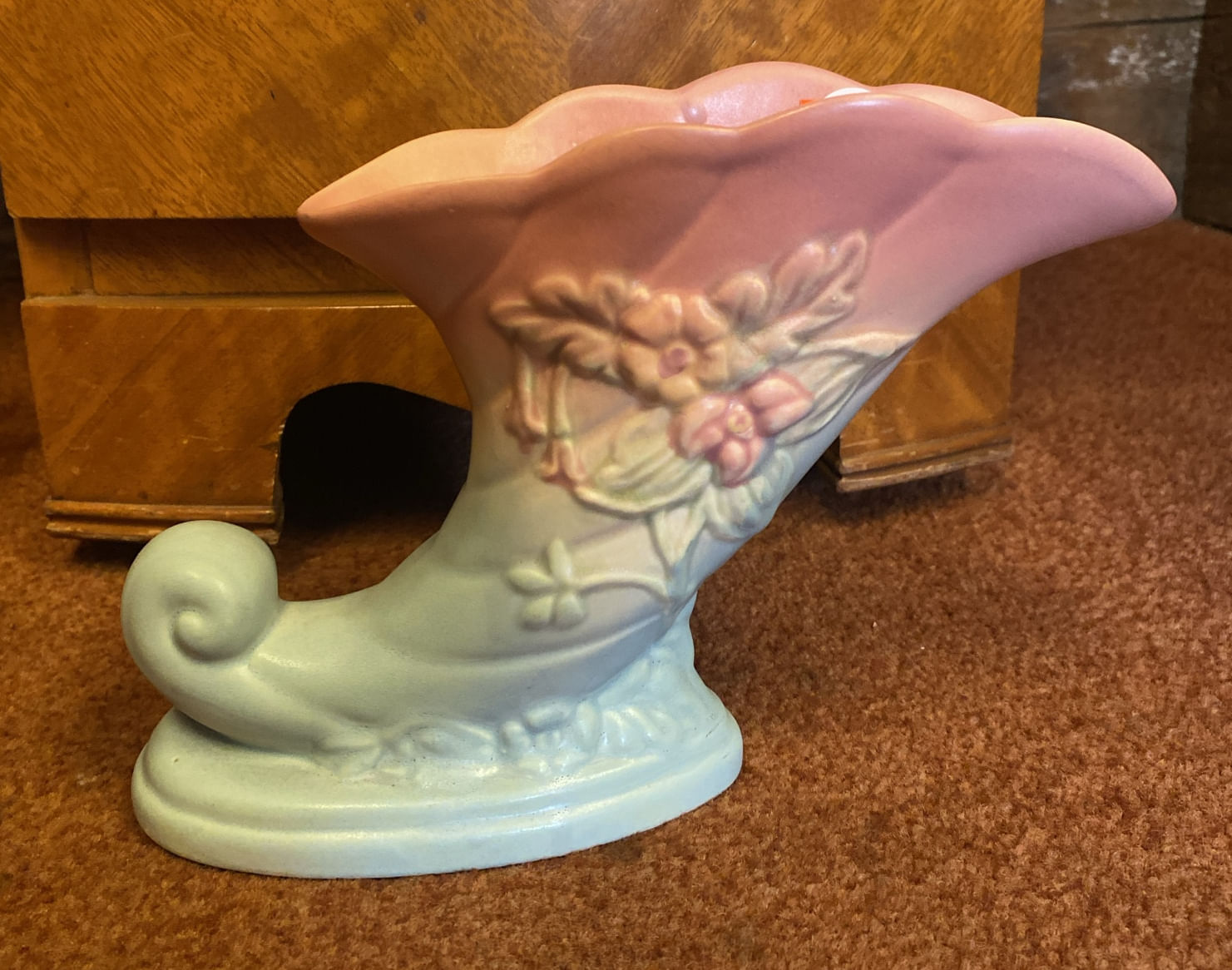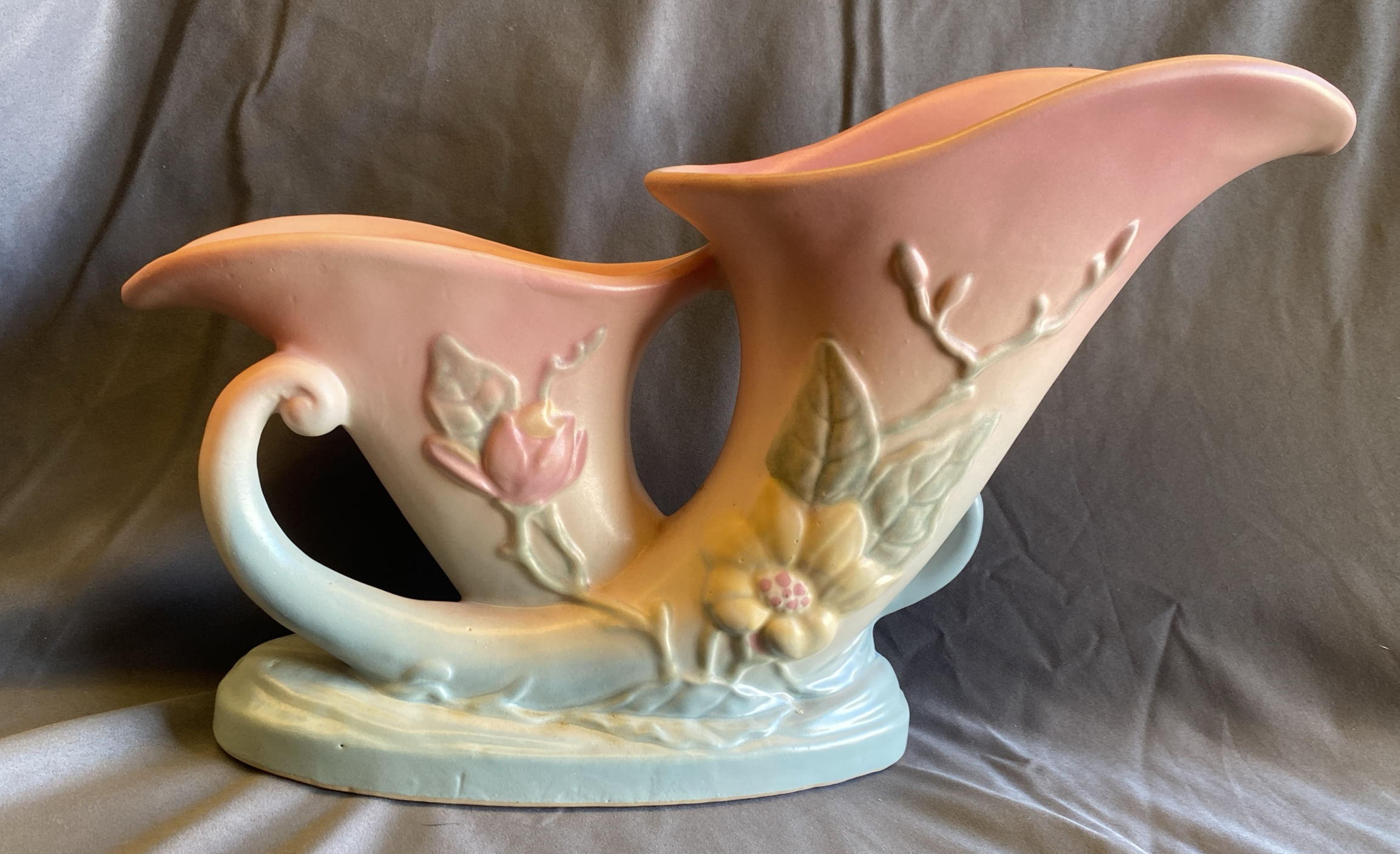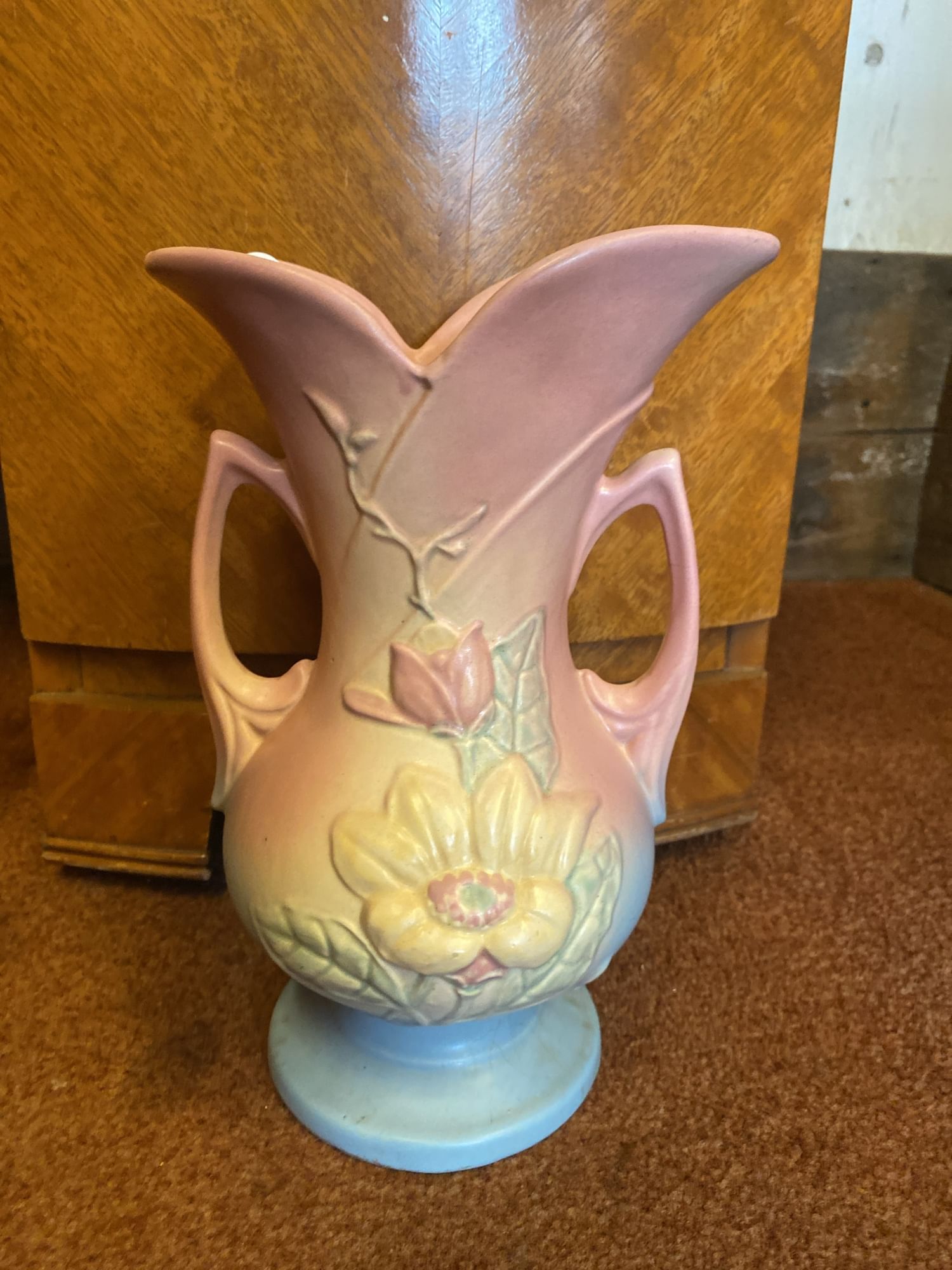 277 Unmarked Haeger Pottery Vase Matte Pink with Double Handle 9”