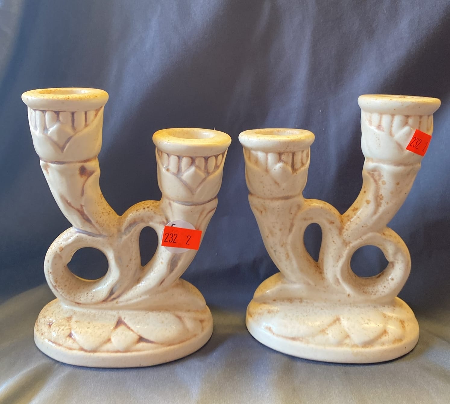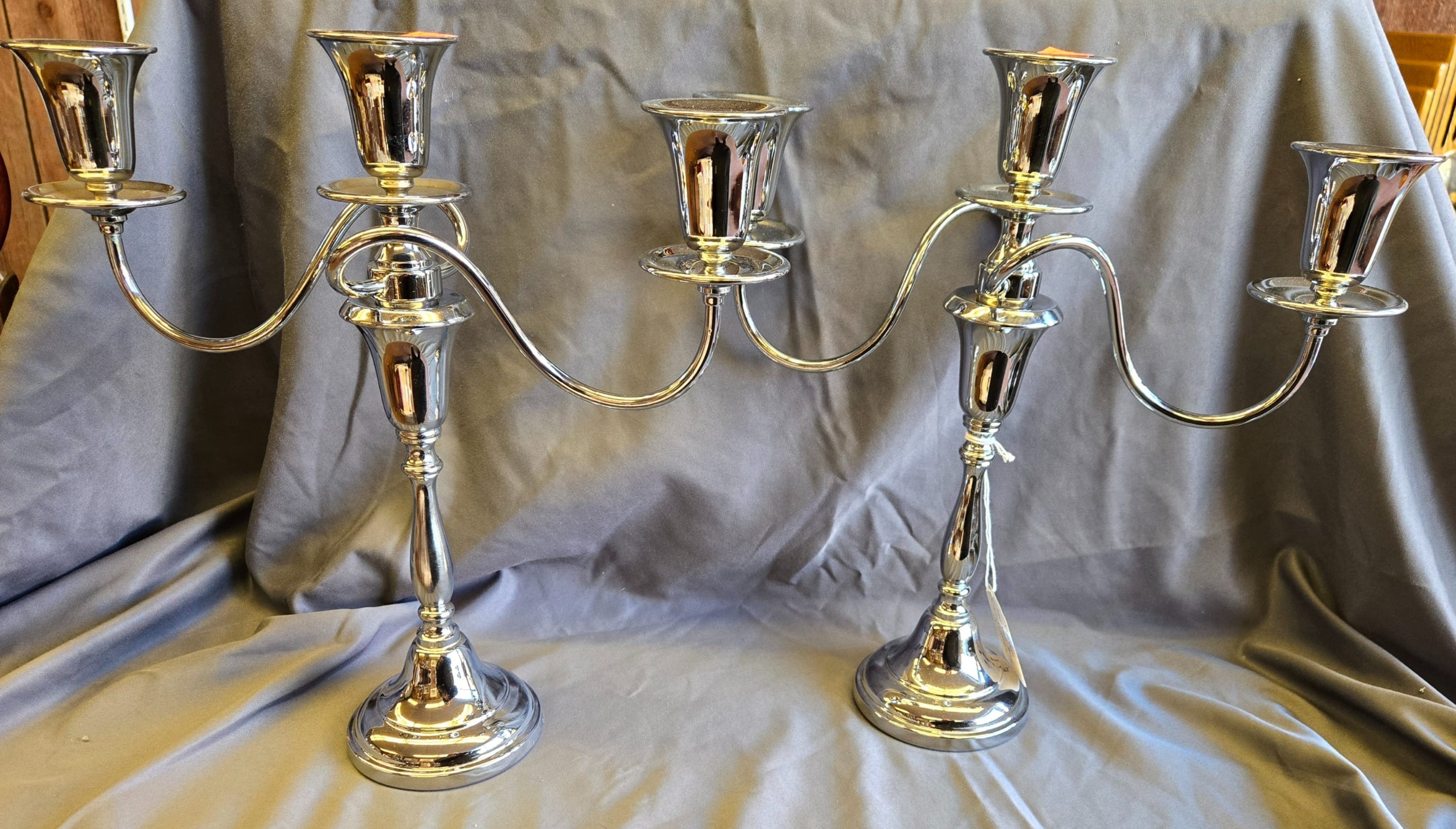 4 2 Farber Bros Triple Candlestick Holders 12.5”