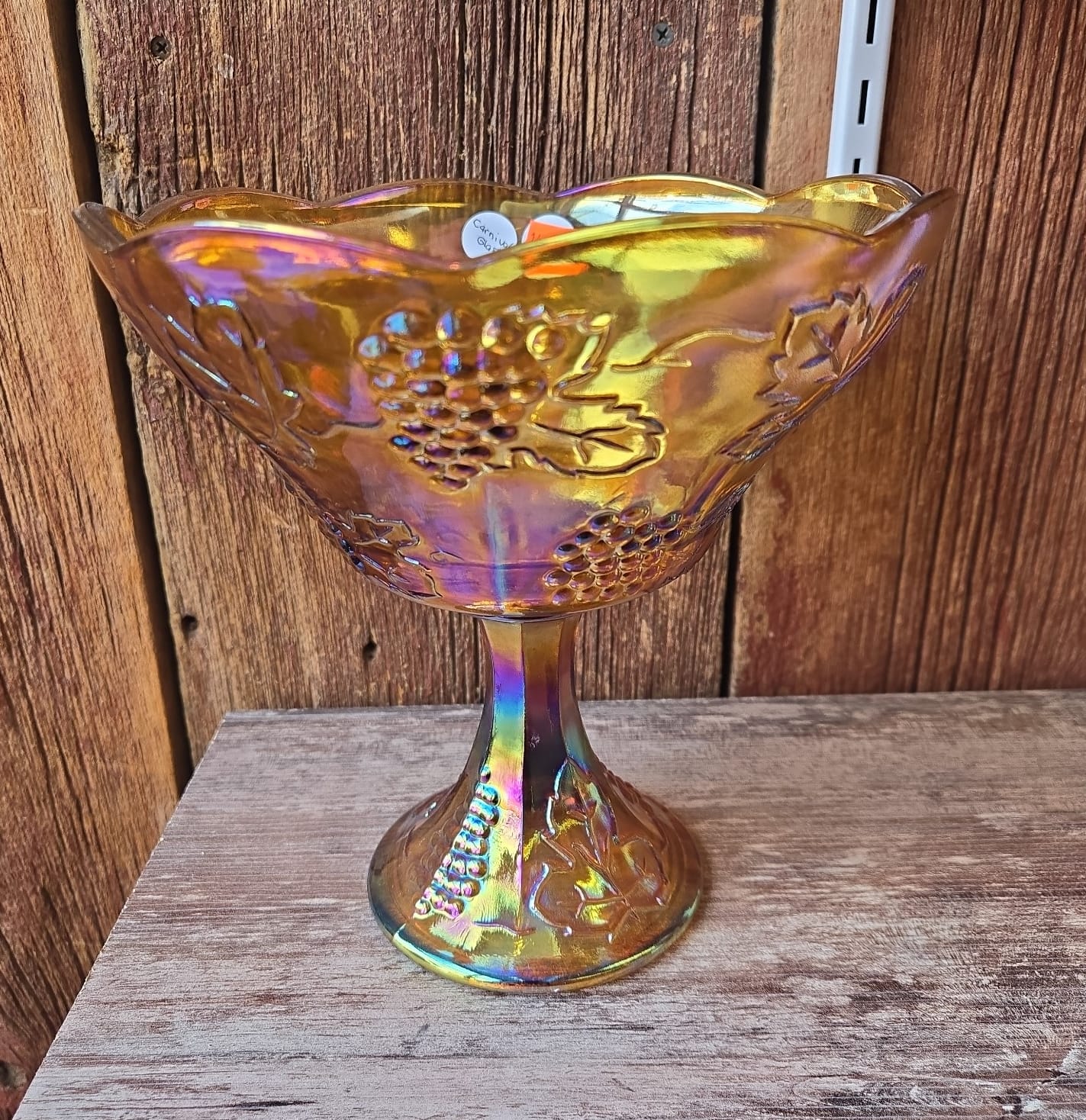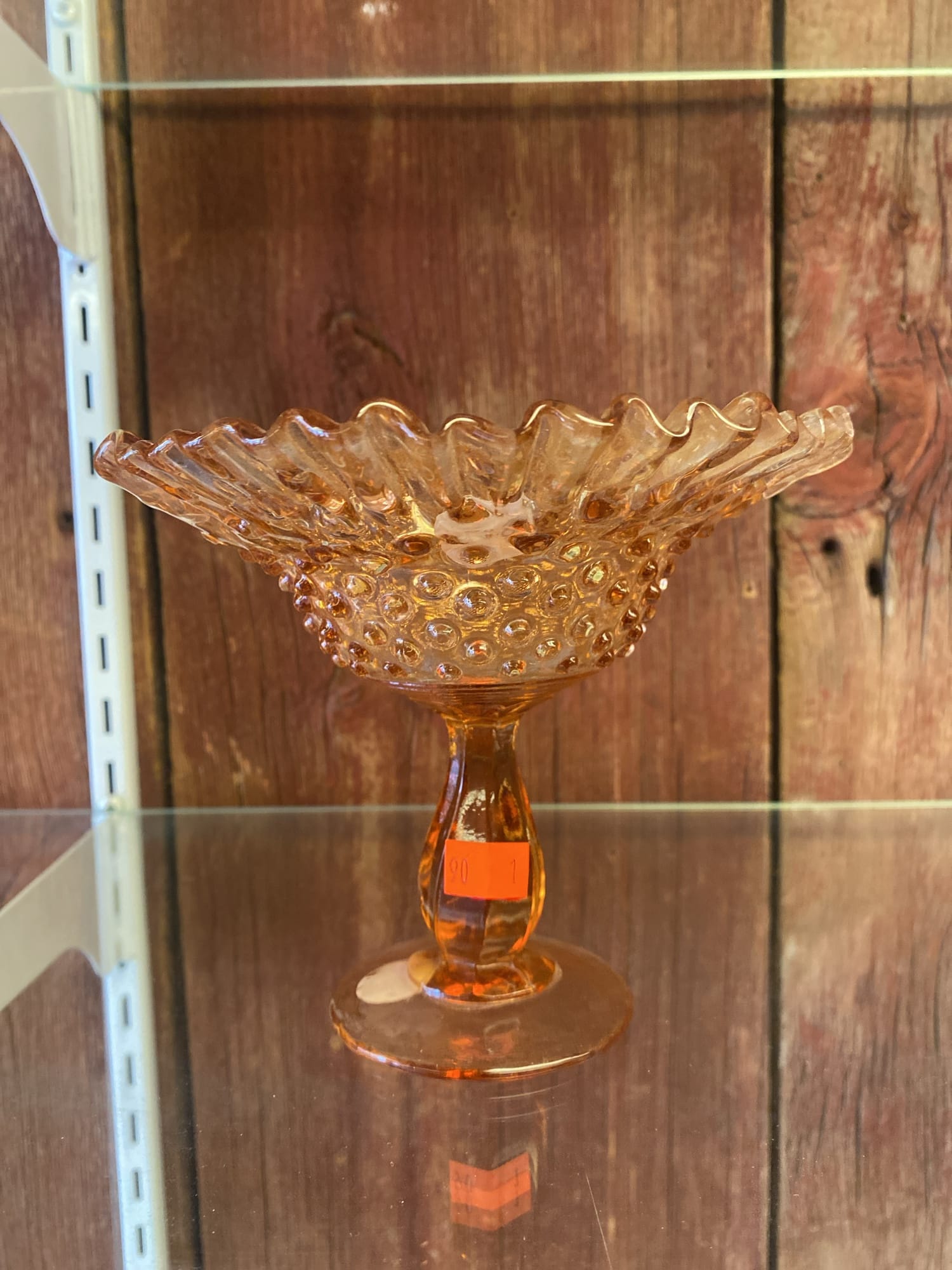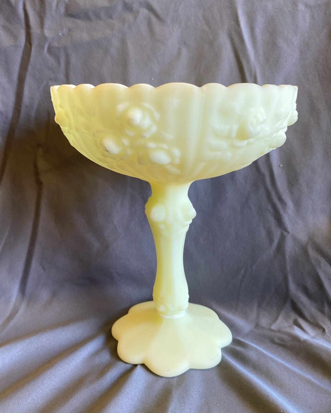 53 Uranium Fenton Custard Satin Glass Compote 7.5”
