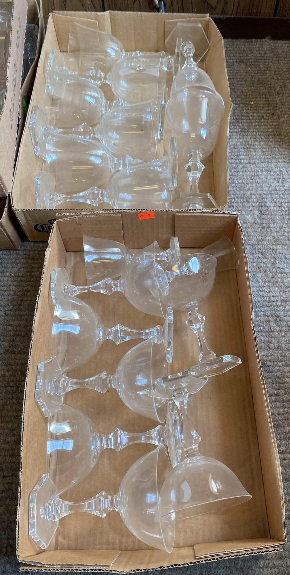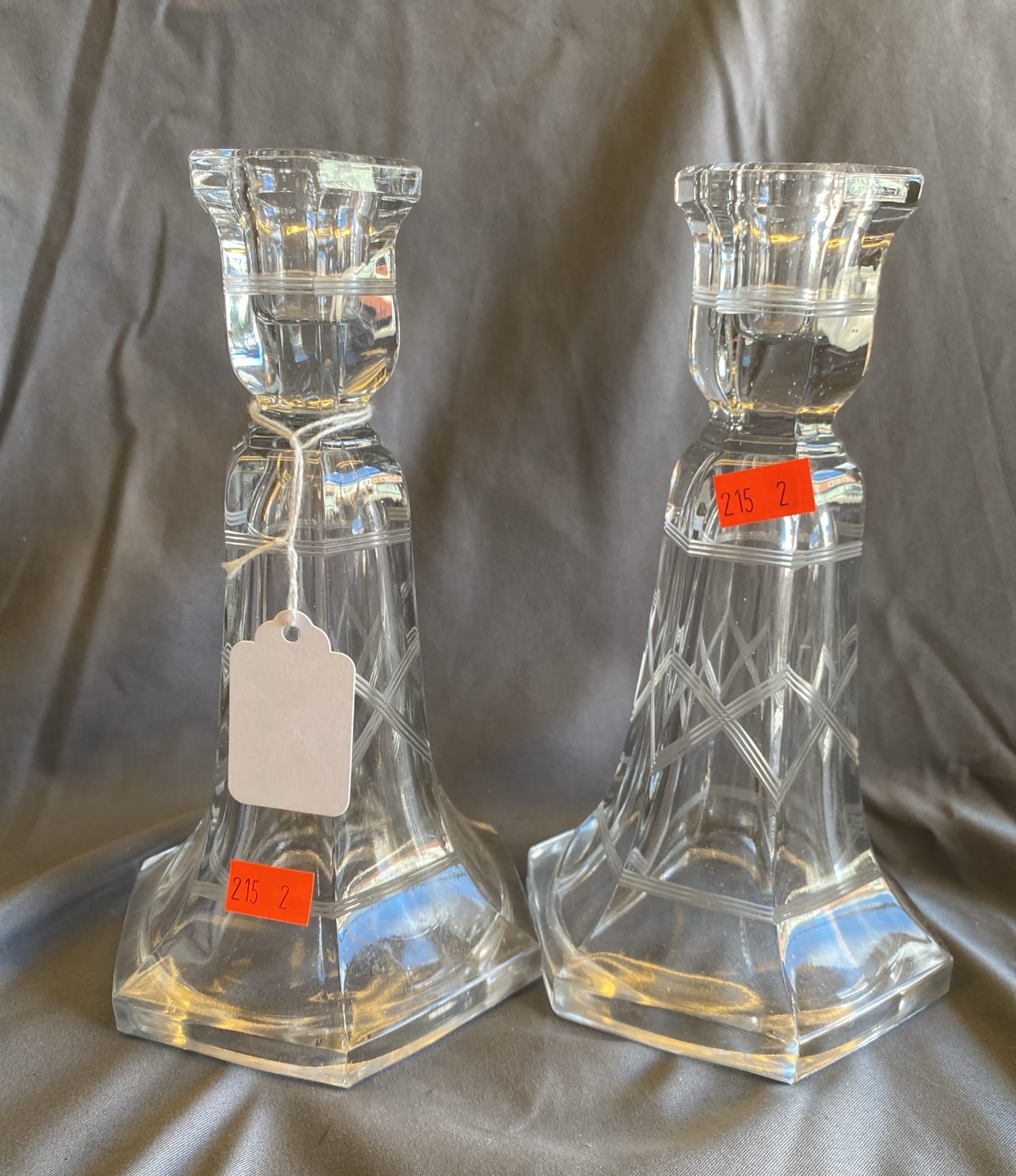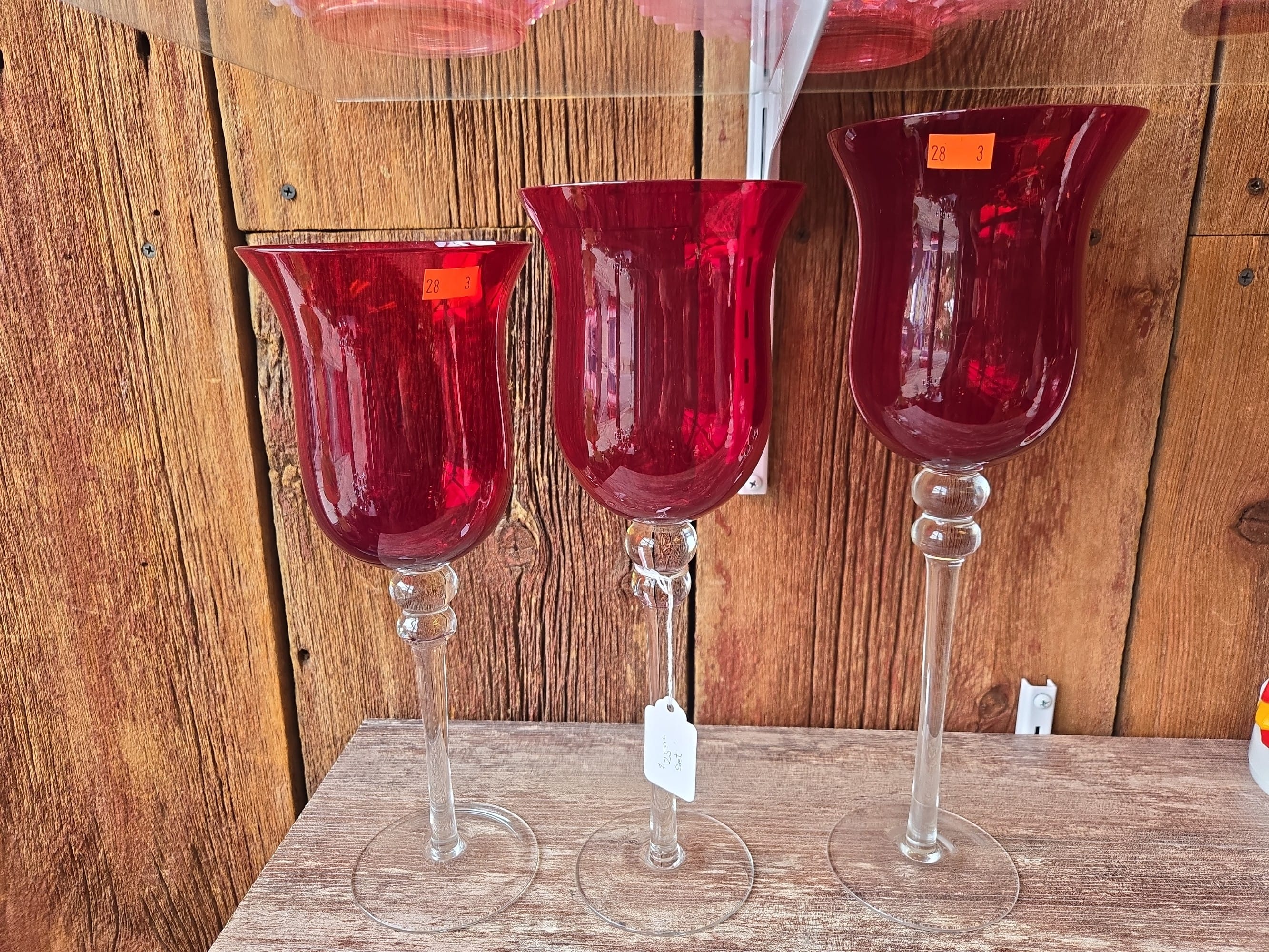 28 Red and clear Glass Candle Holders 12”, 11”, 10”