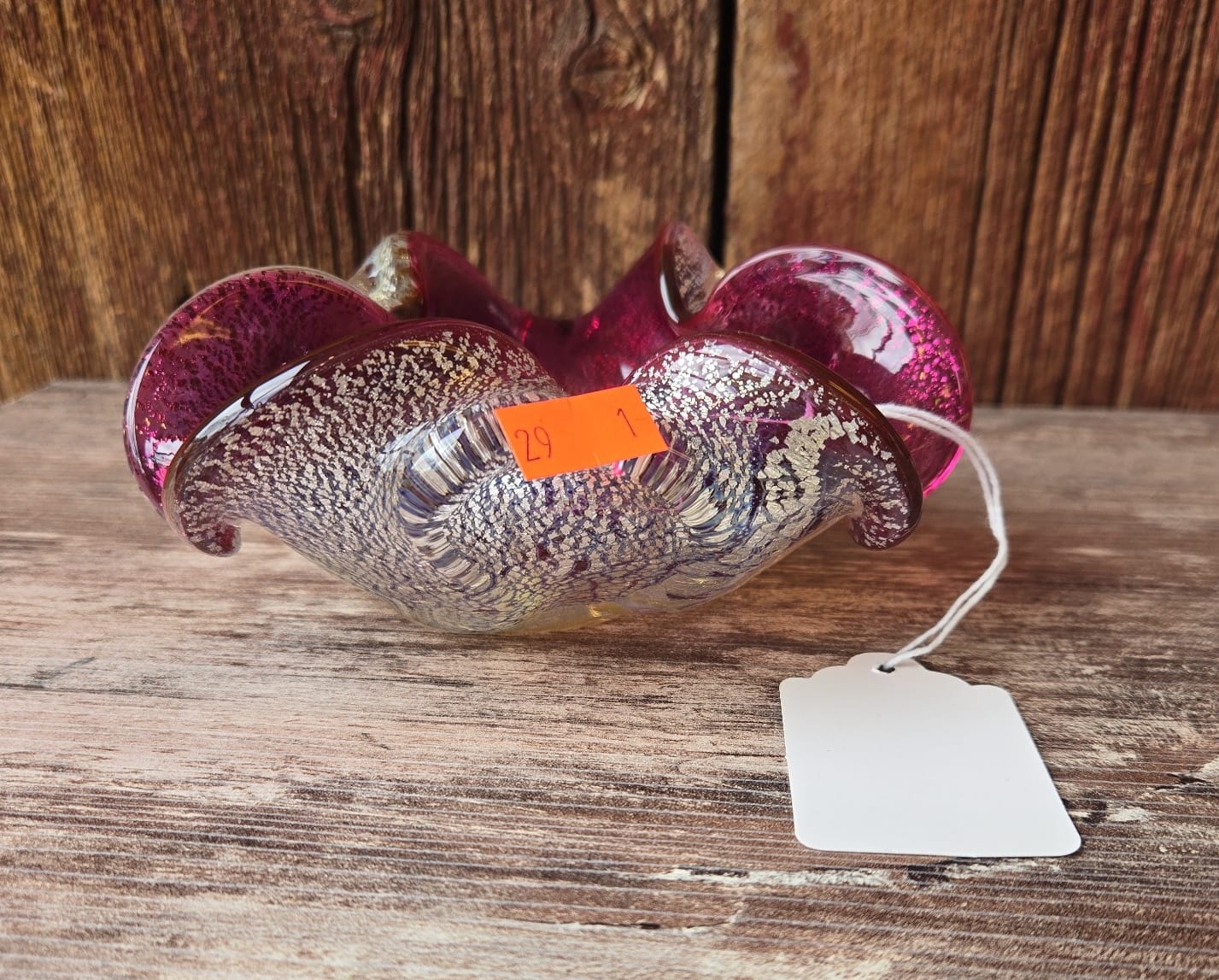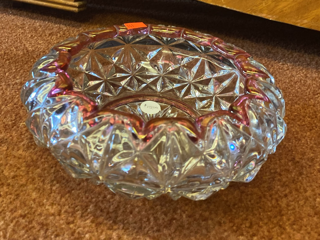 24 Unmarked Cranberry Fenton Opalescent Bowl 6”