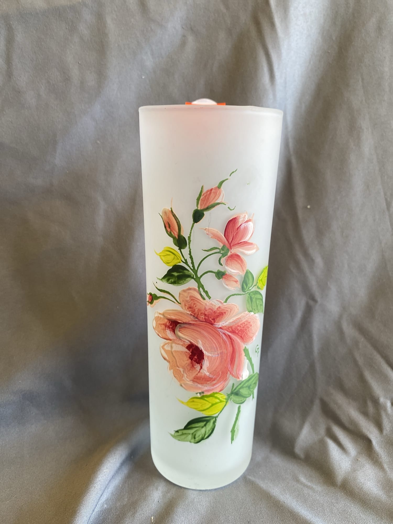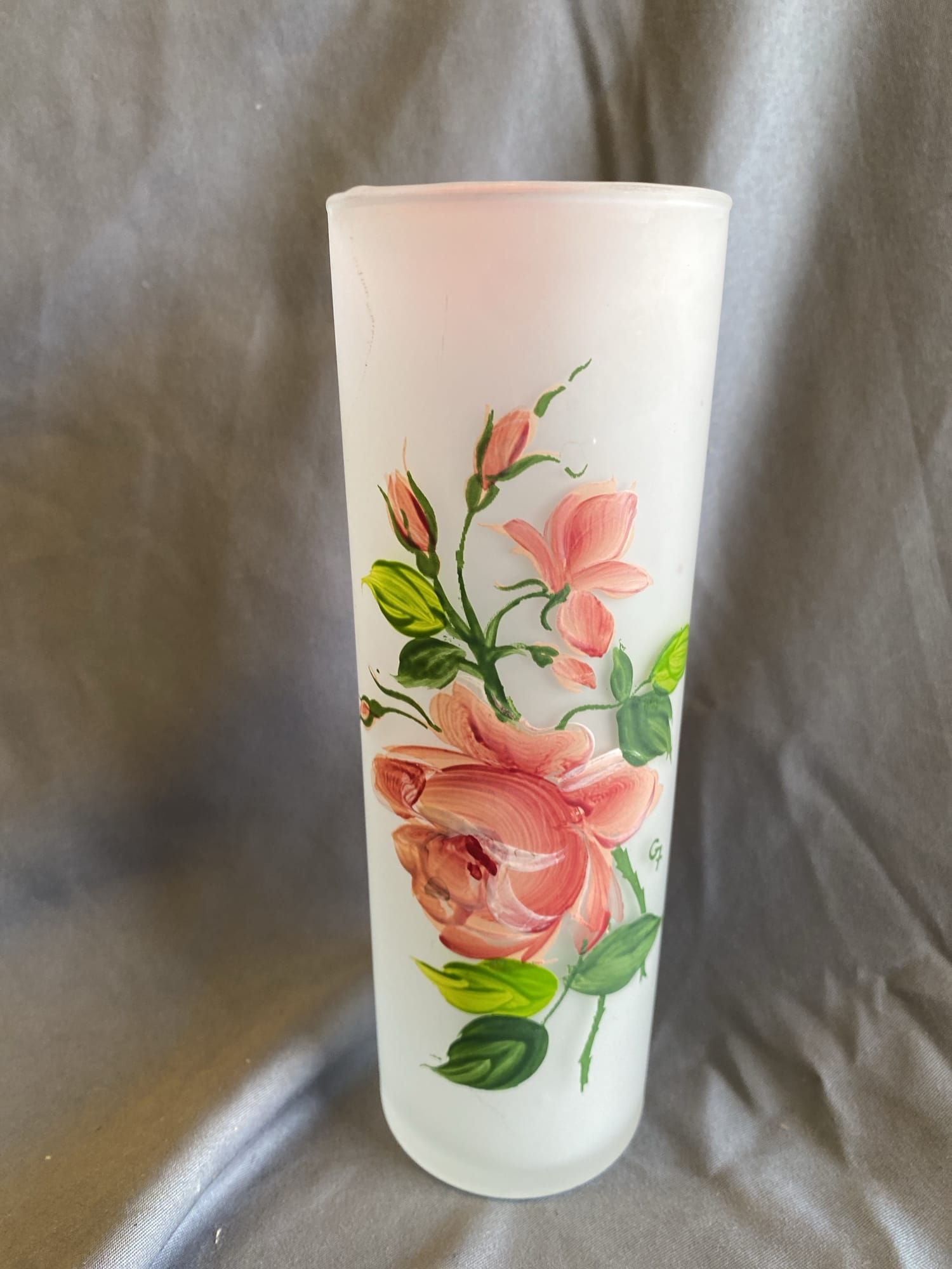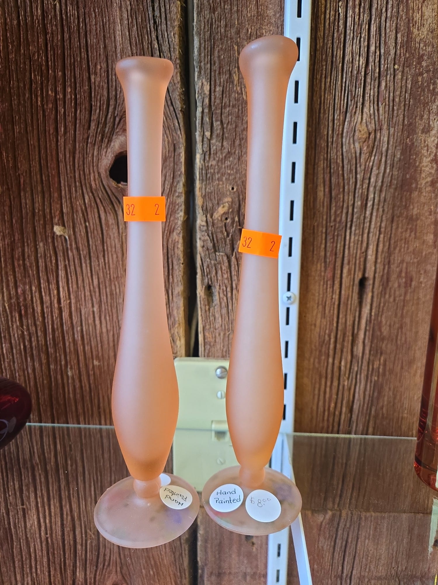 32 2 Hand Painted Pink Satin Bud Vases 8.5”