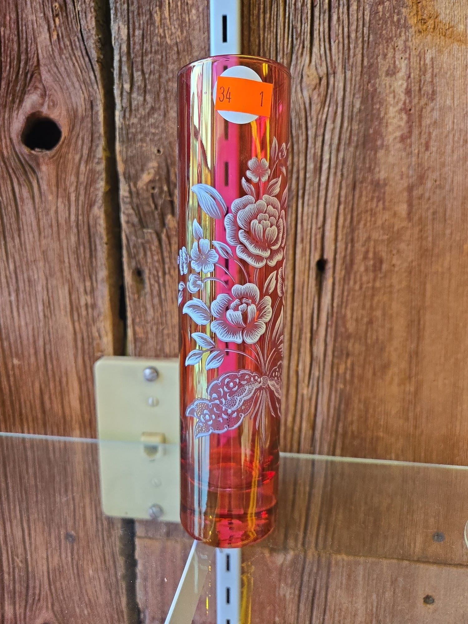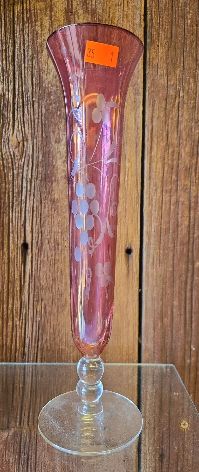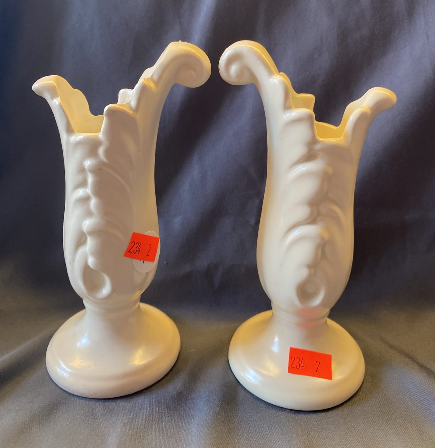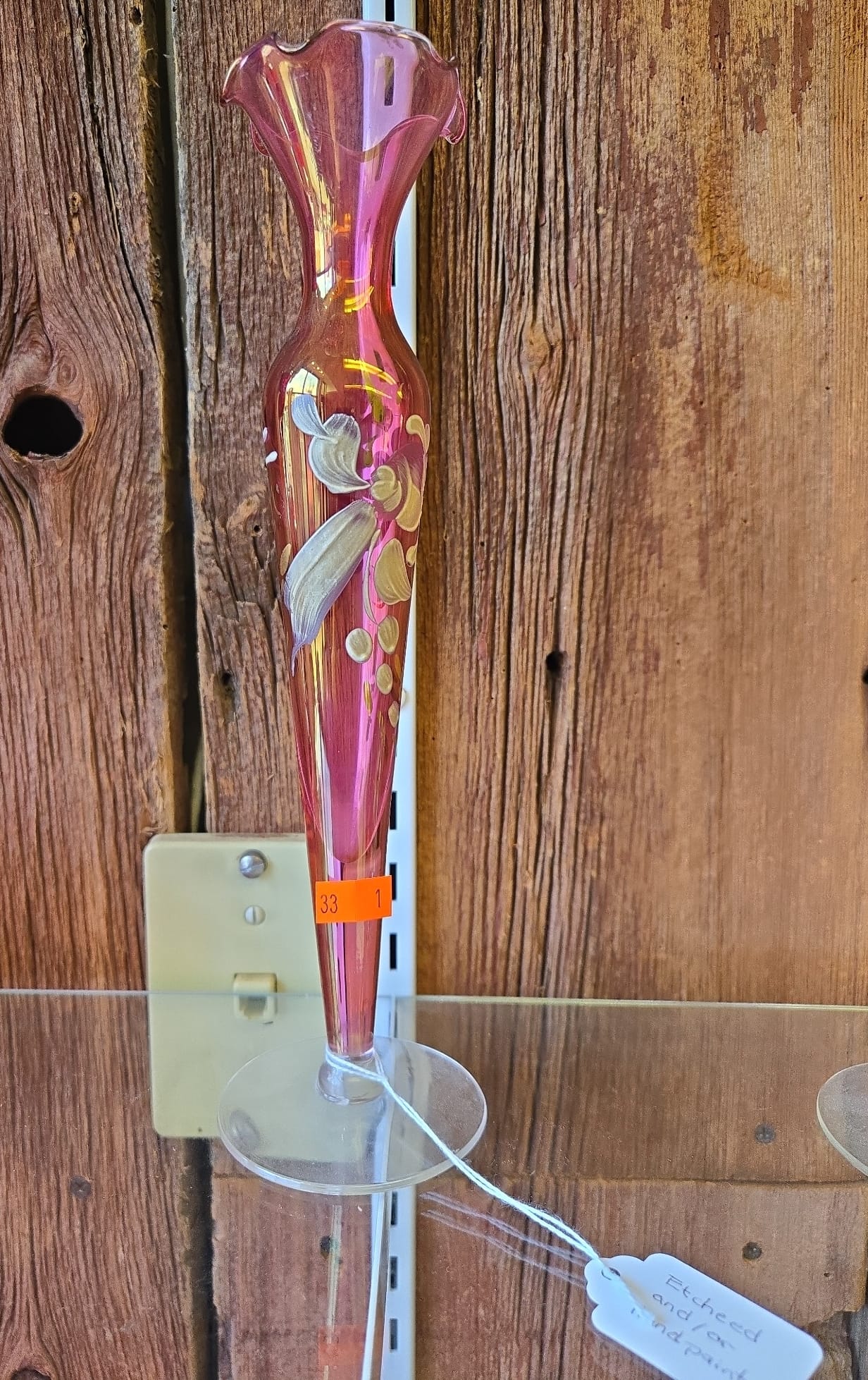 32 2 Hand Painted Pink Satin Bud Vases 8.5”