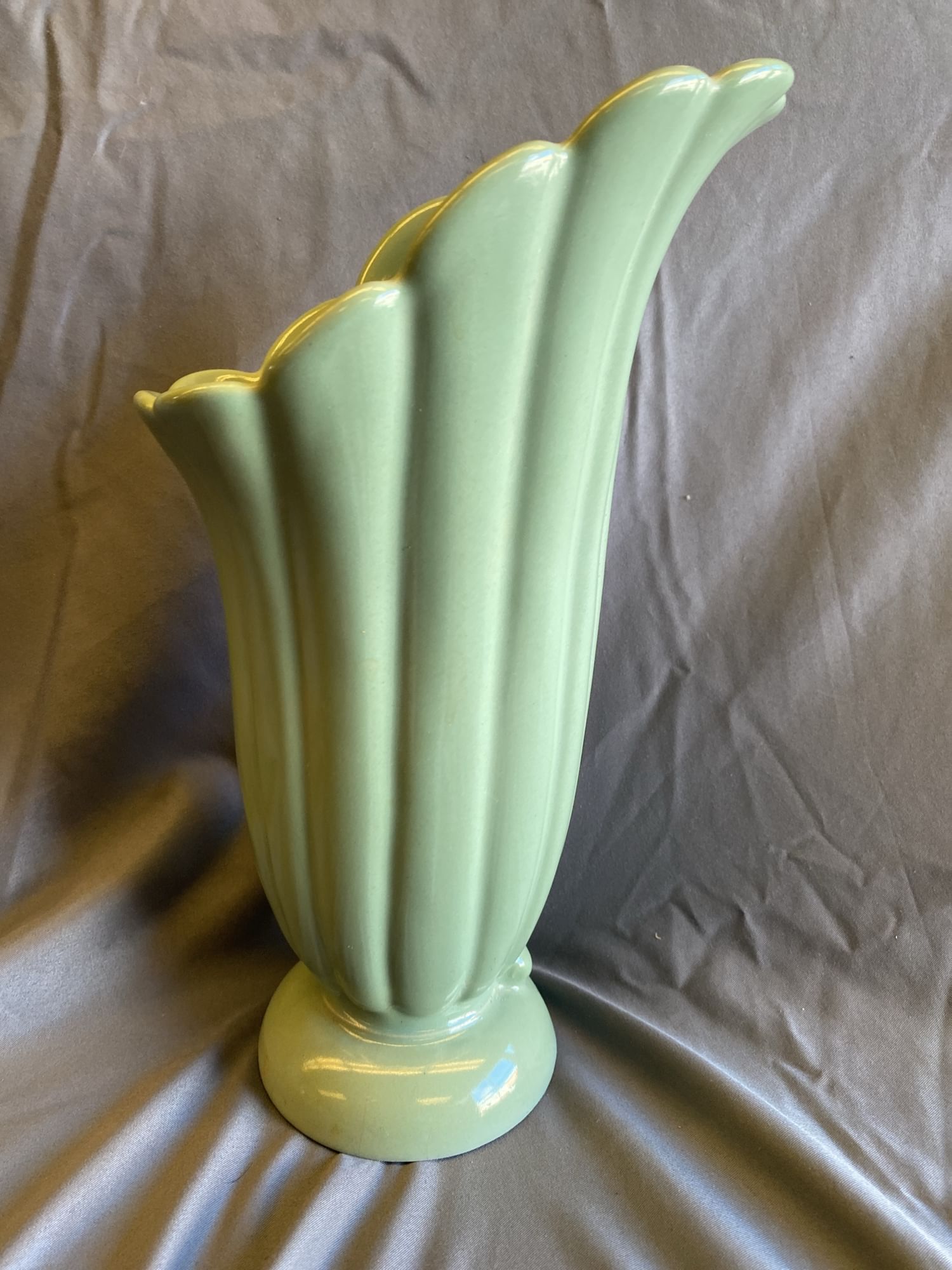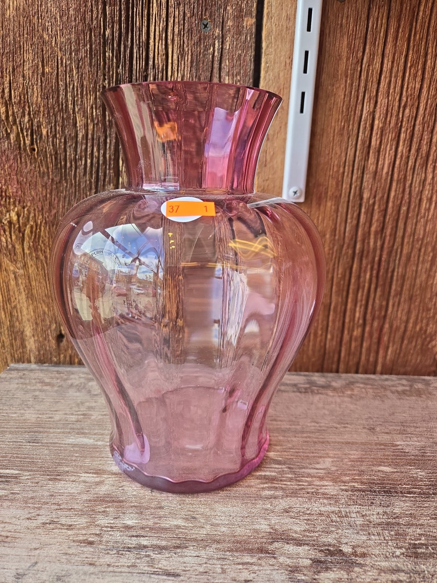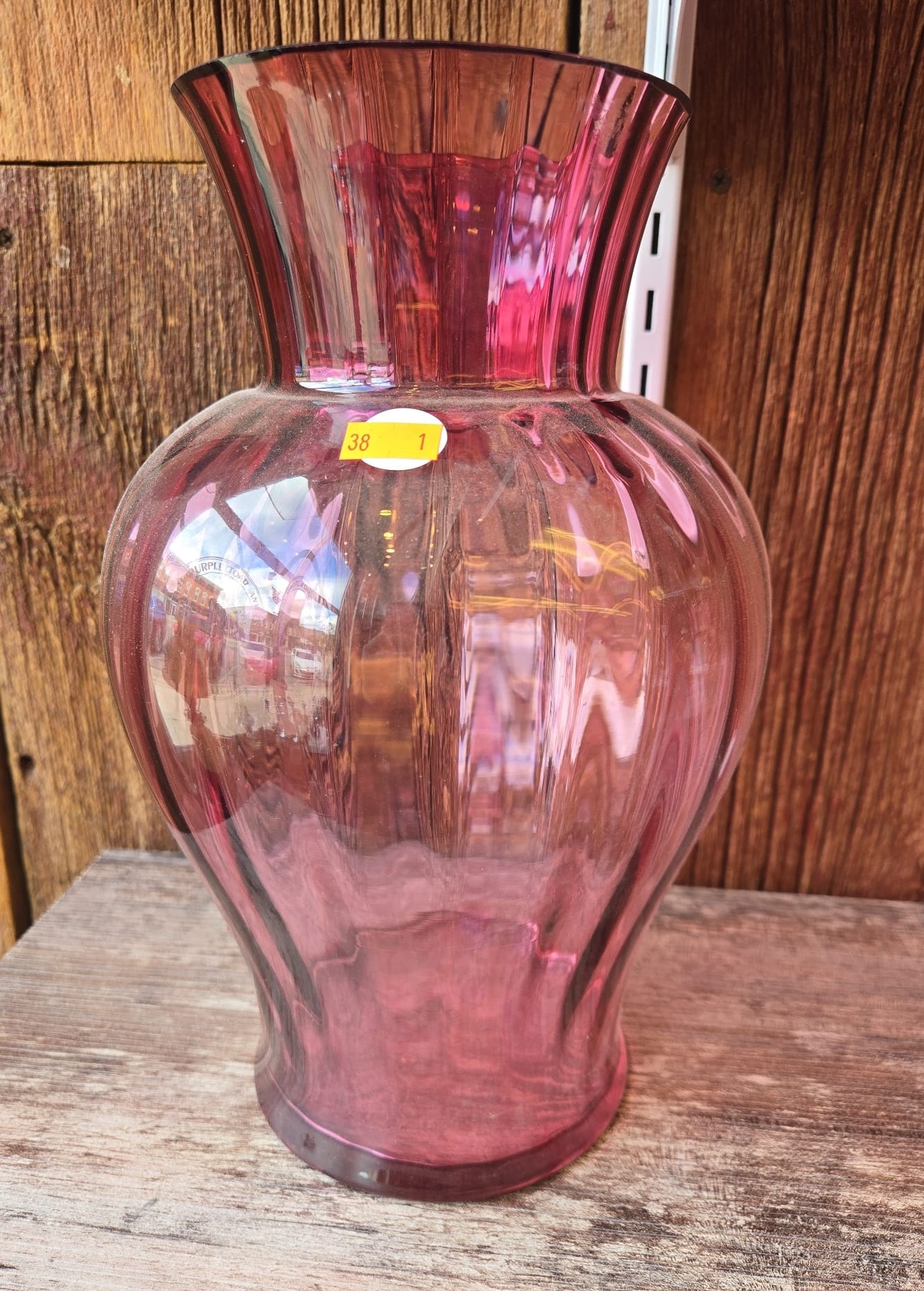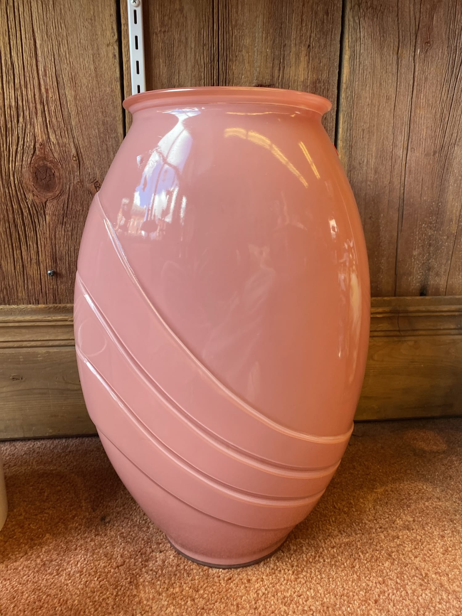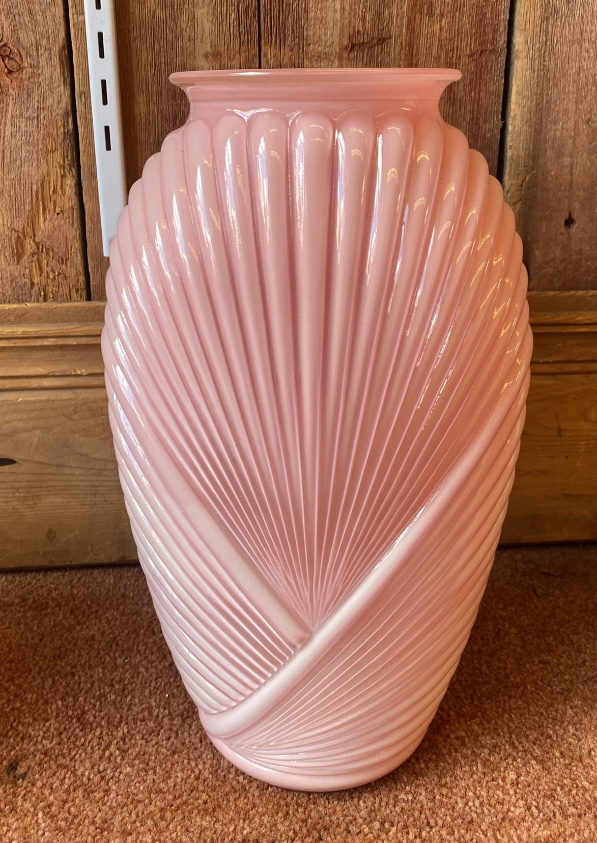 69 Boho Art Deco Ribbed Pleated Pink Glass Vase 13”