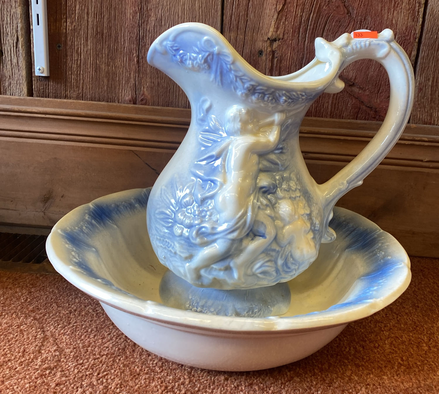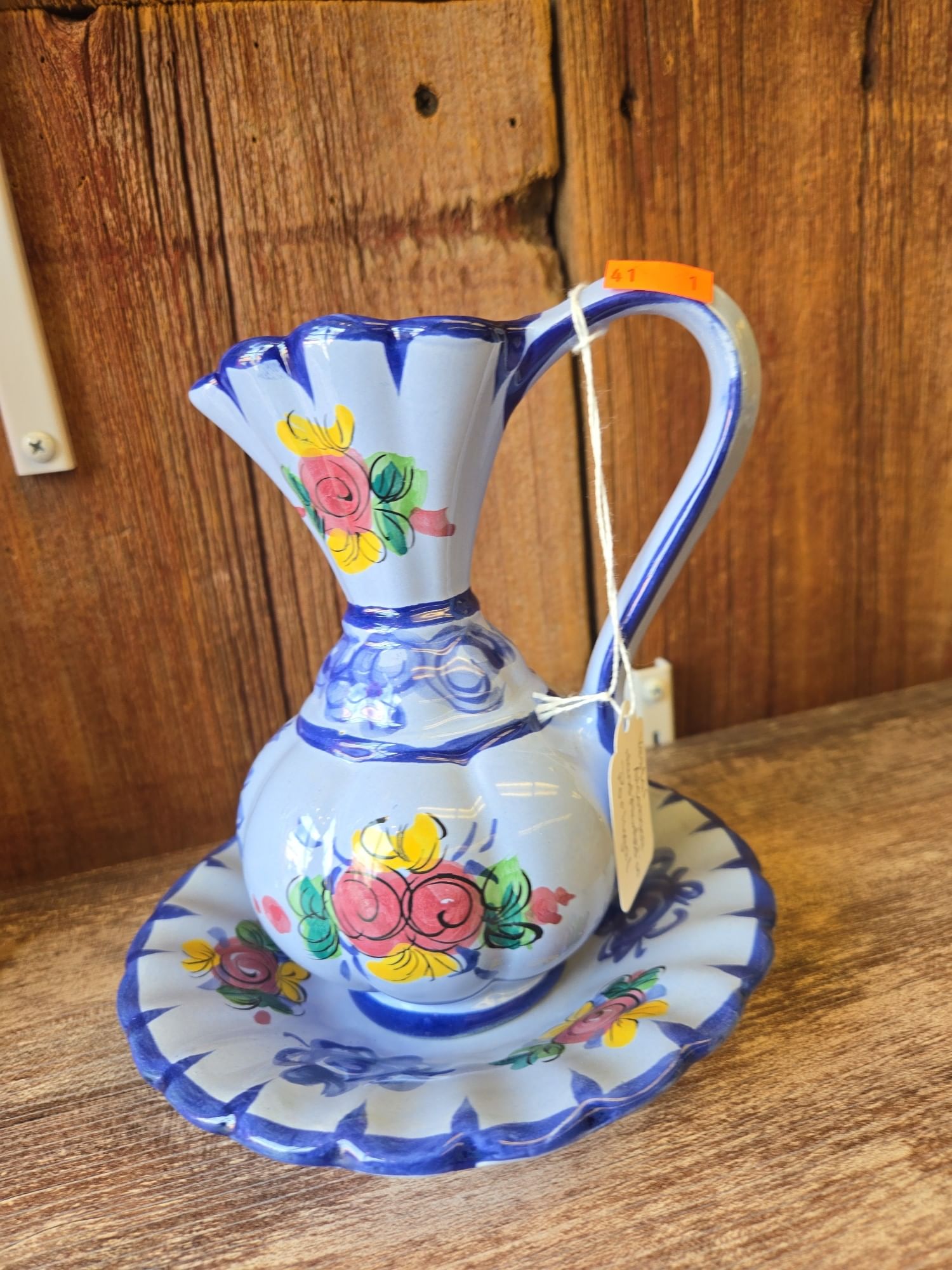 41 Vestal Alcobaca Hand Painted Pitcher and Basin 6”