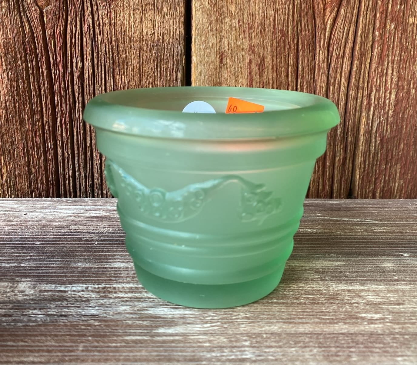 335 Made in Italy Hand Blown White Glass Floral Canister Jar with Lid 9”