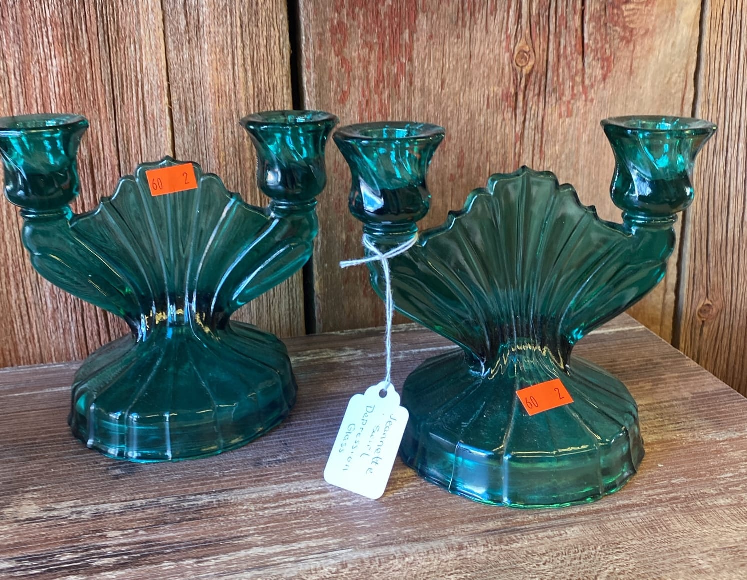 60 2 Jeannette Swirl Depression Glass Double Candlestick Holders 5.5”