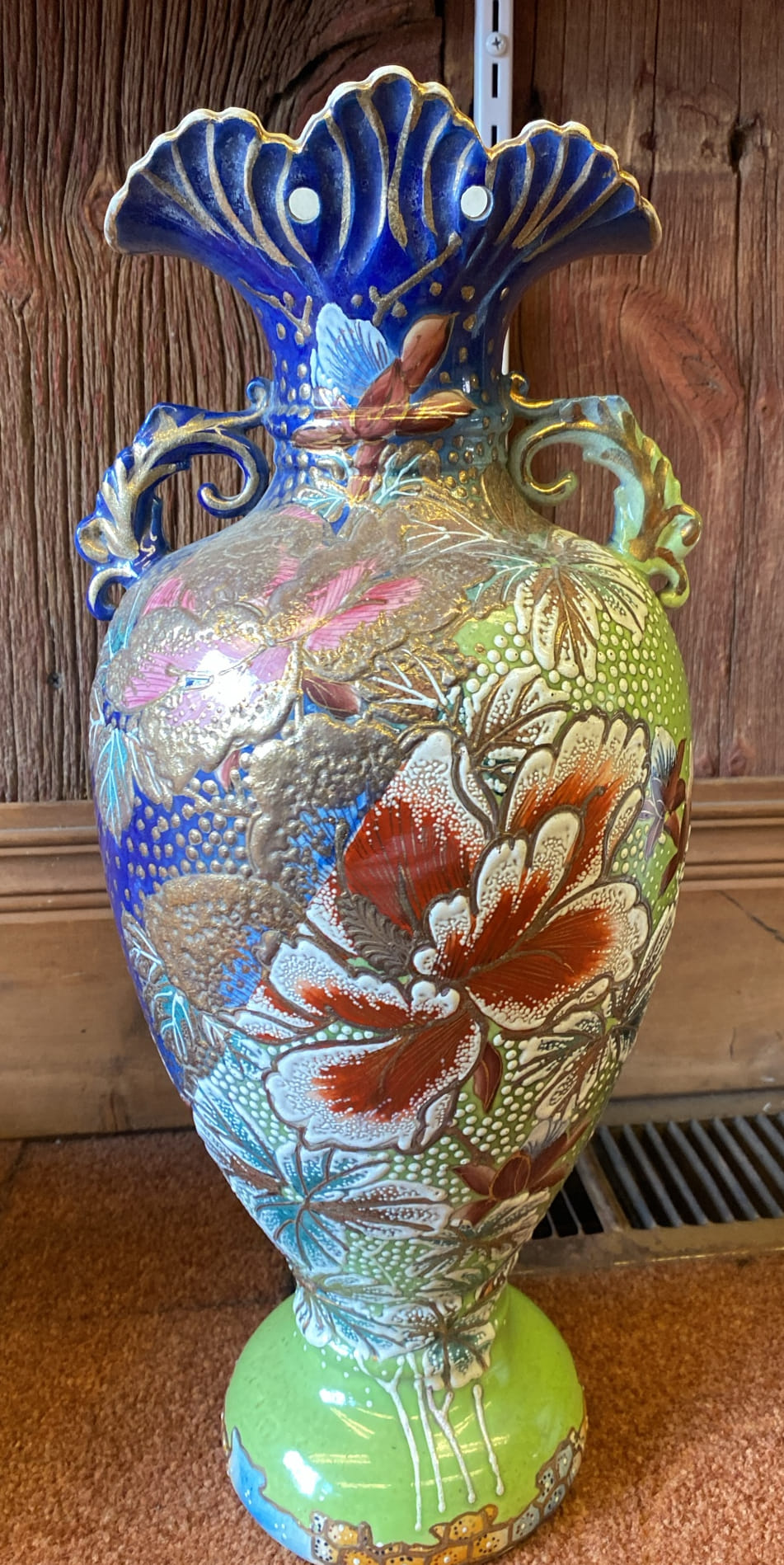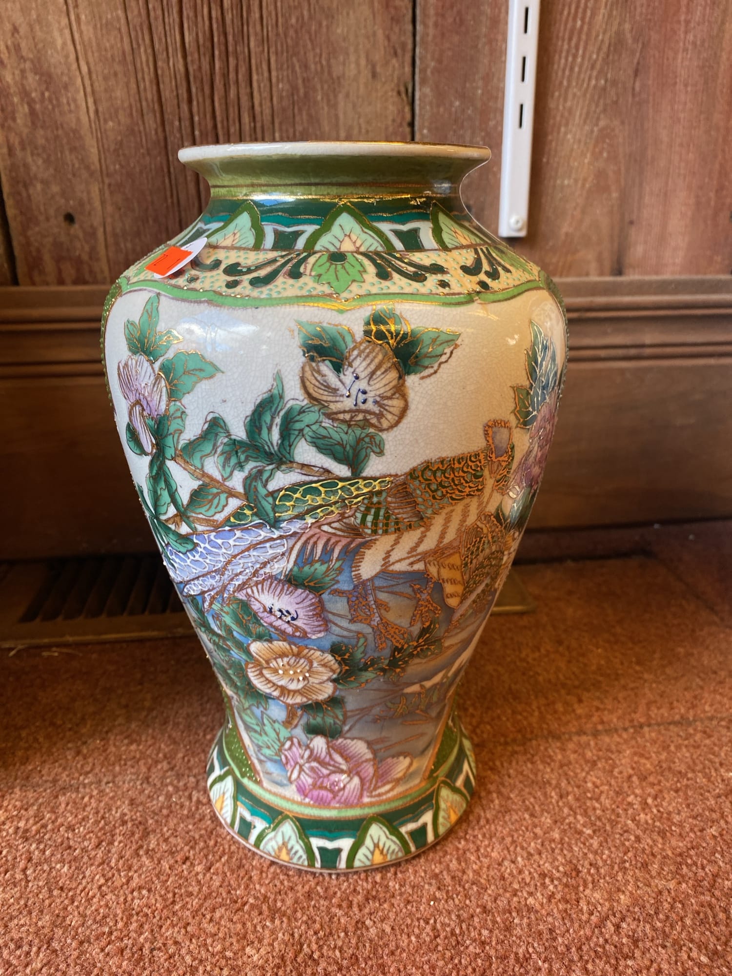 72 Oriental Ceramic Vase Peacock & Floral design 10.5”