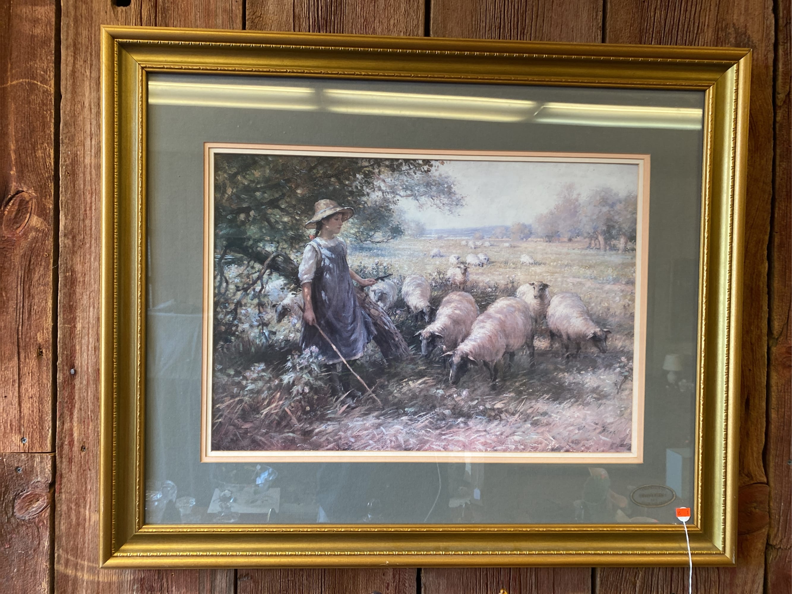 85 Framed "Shepherd's daughter's flock" print 33.5” x 27.5”