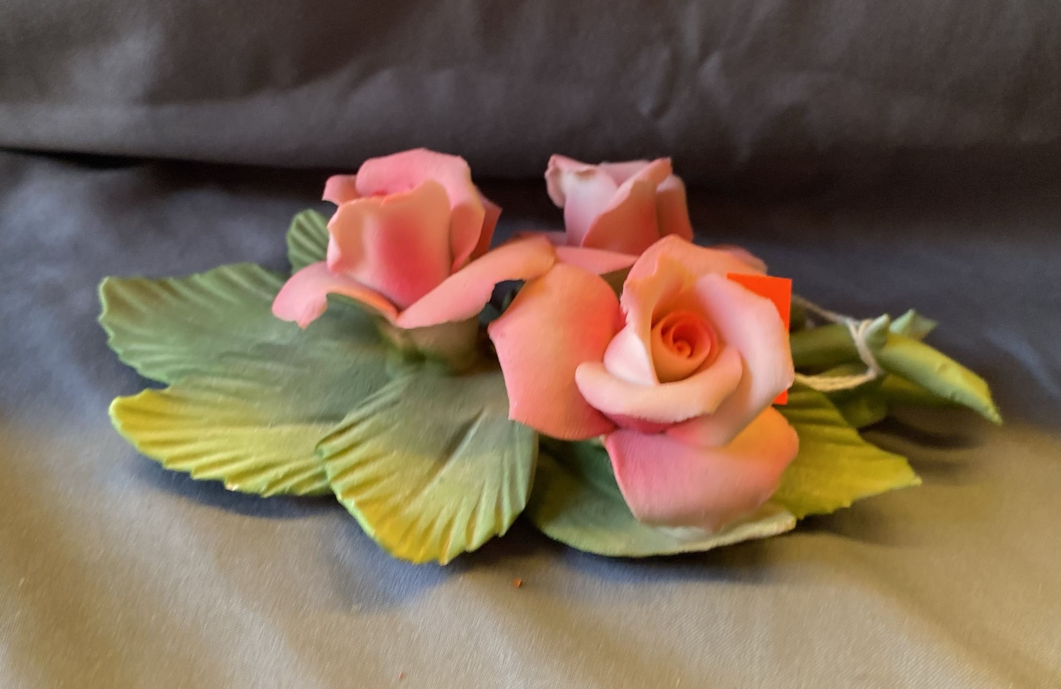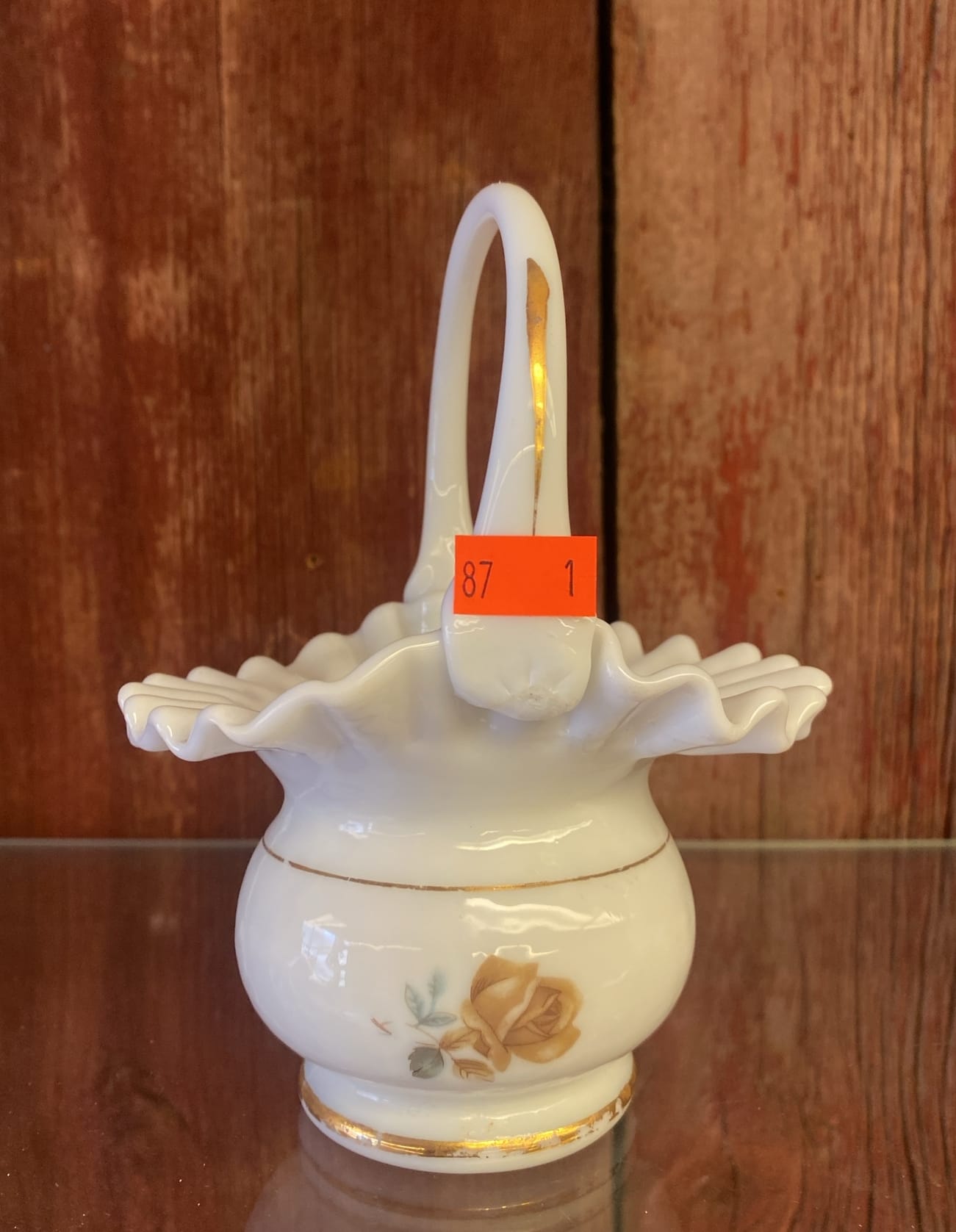 87 Ceramic Basket Vase with Rose Design 5.5”