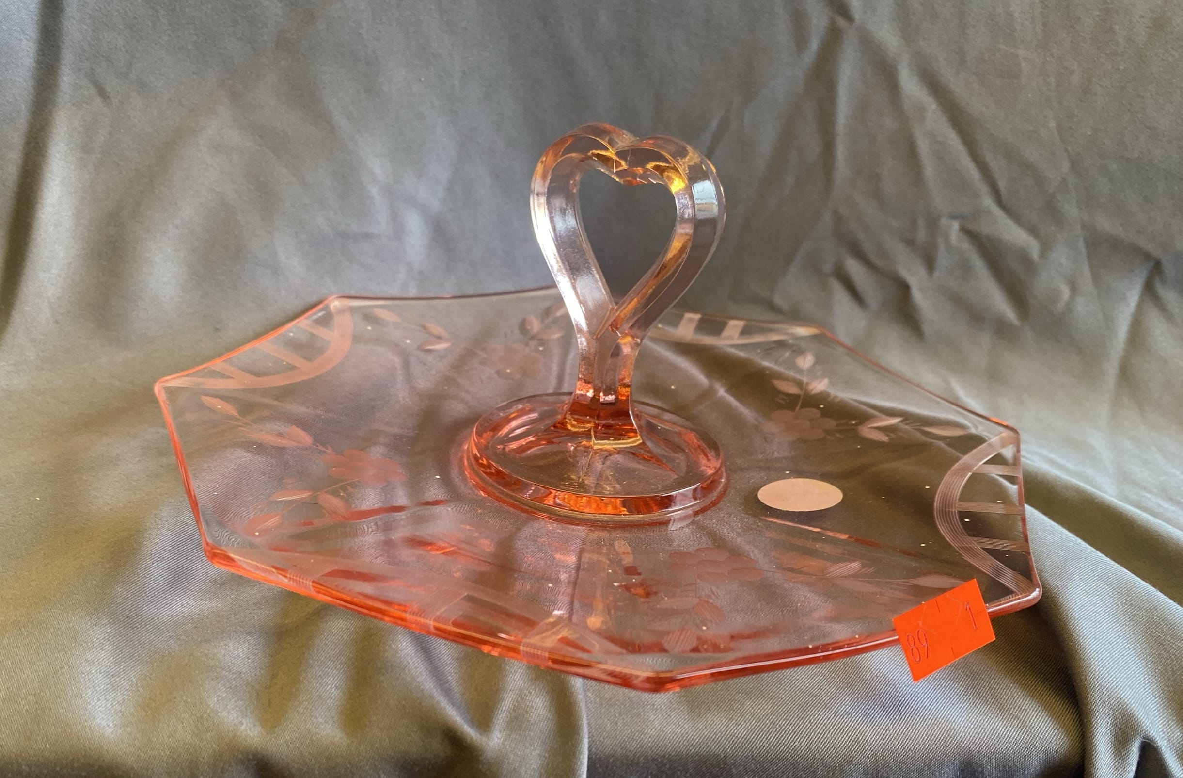 89 Pink Depression Glass Octagon Floral Serving Tray 8”