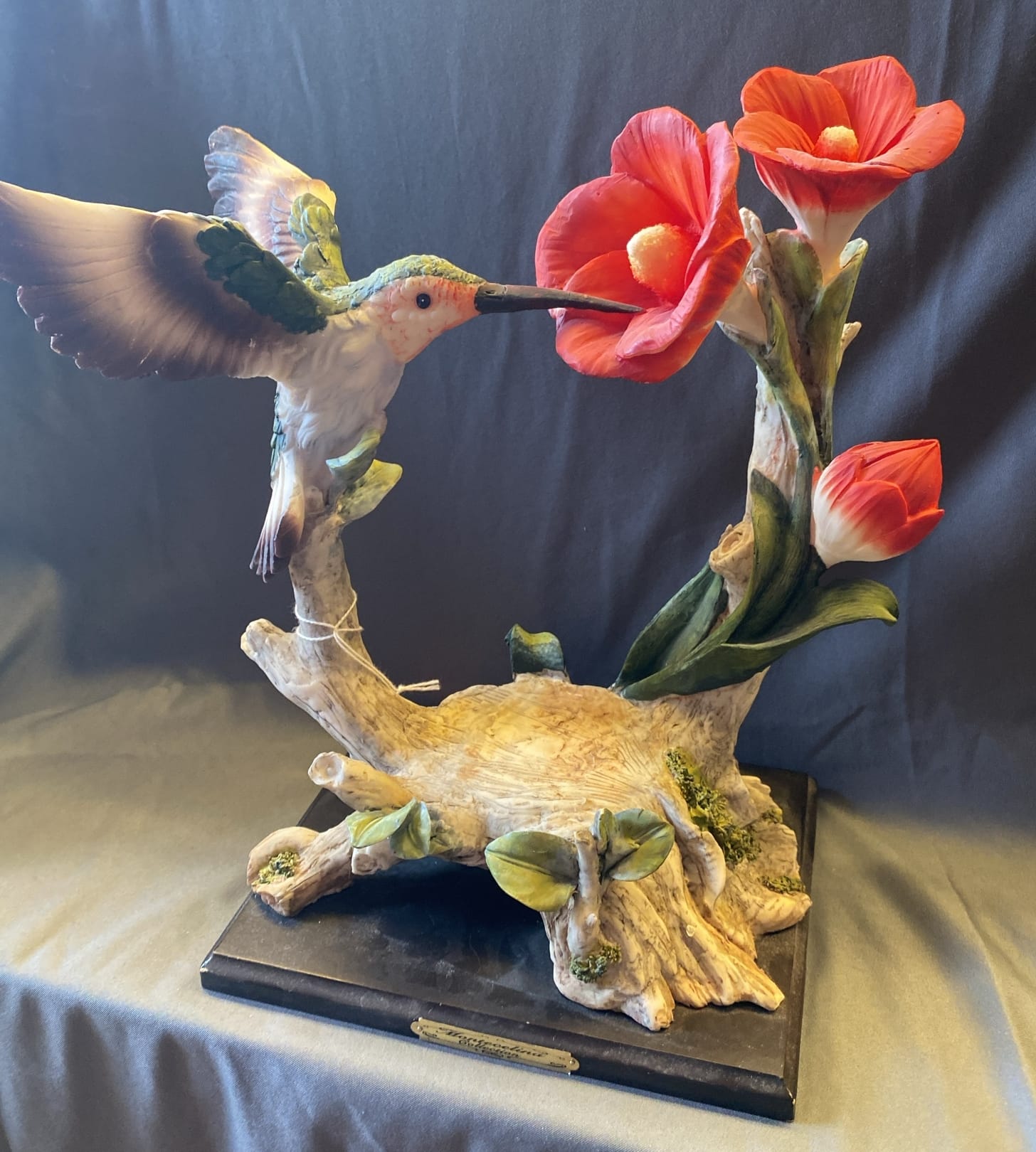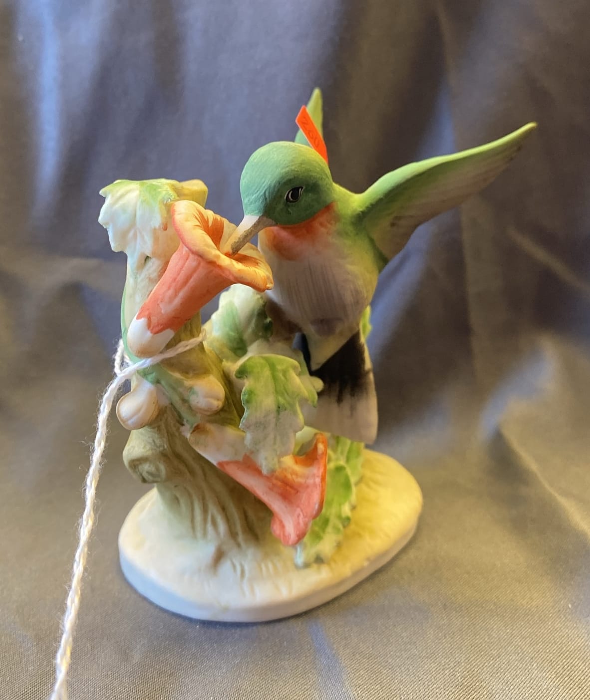258 Porcelain Humming Bird Hibiscus Flower Figurine 10”