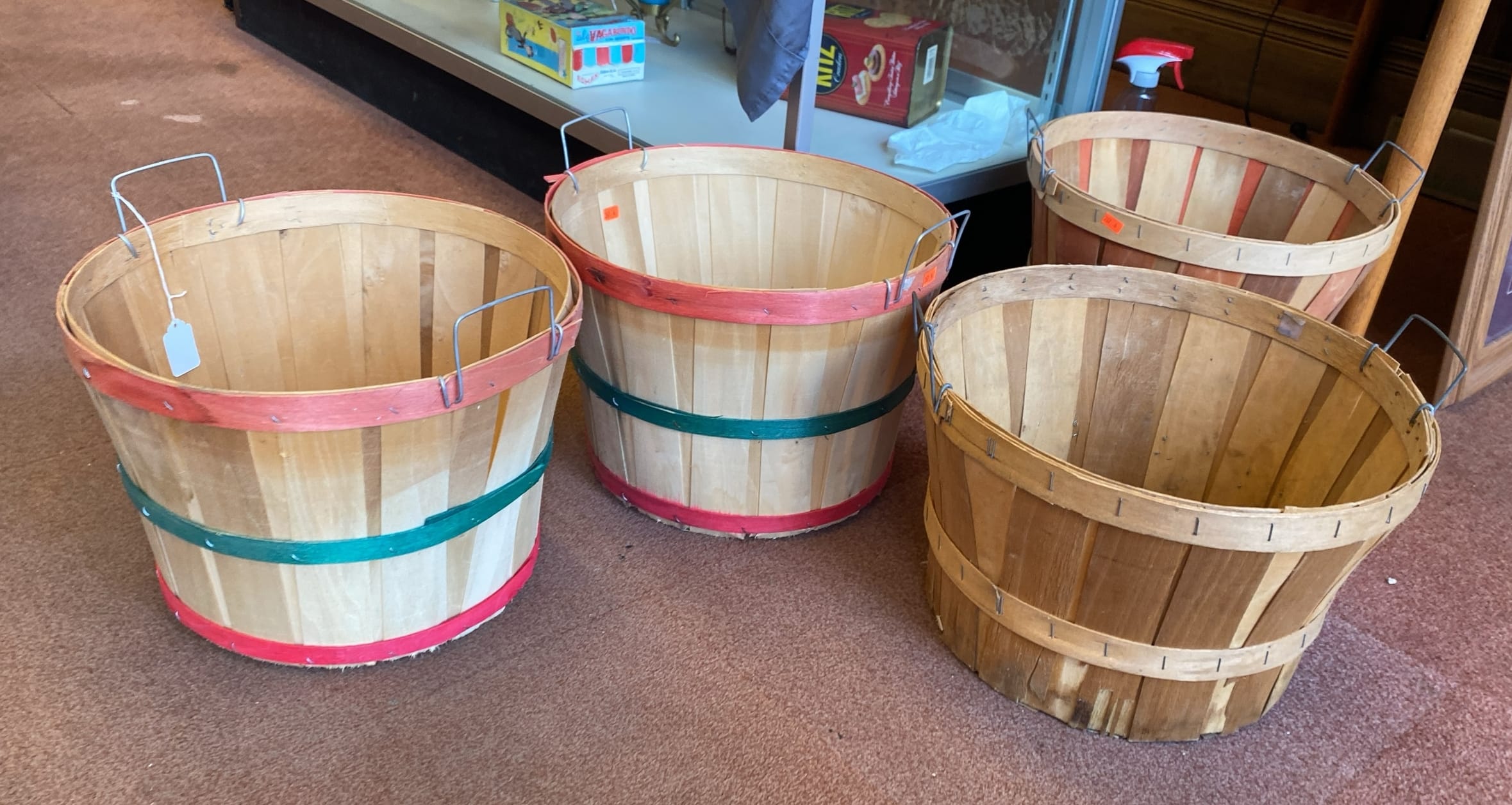 267 (4) Round wood Apple Bushel Baskets 13.5x9.5”