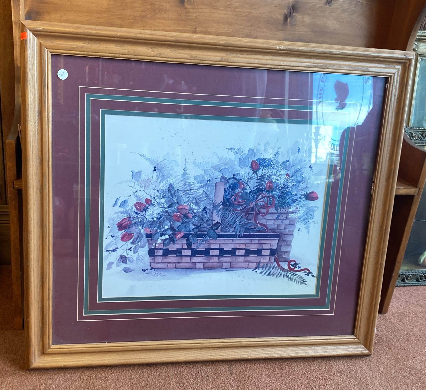 268 Pat Richter “Wine Ribbon” Print in Wood Frame 31x28”