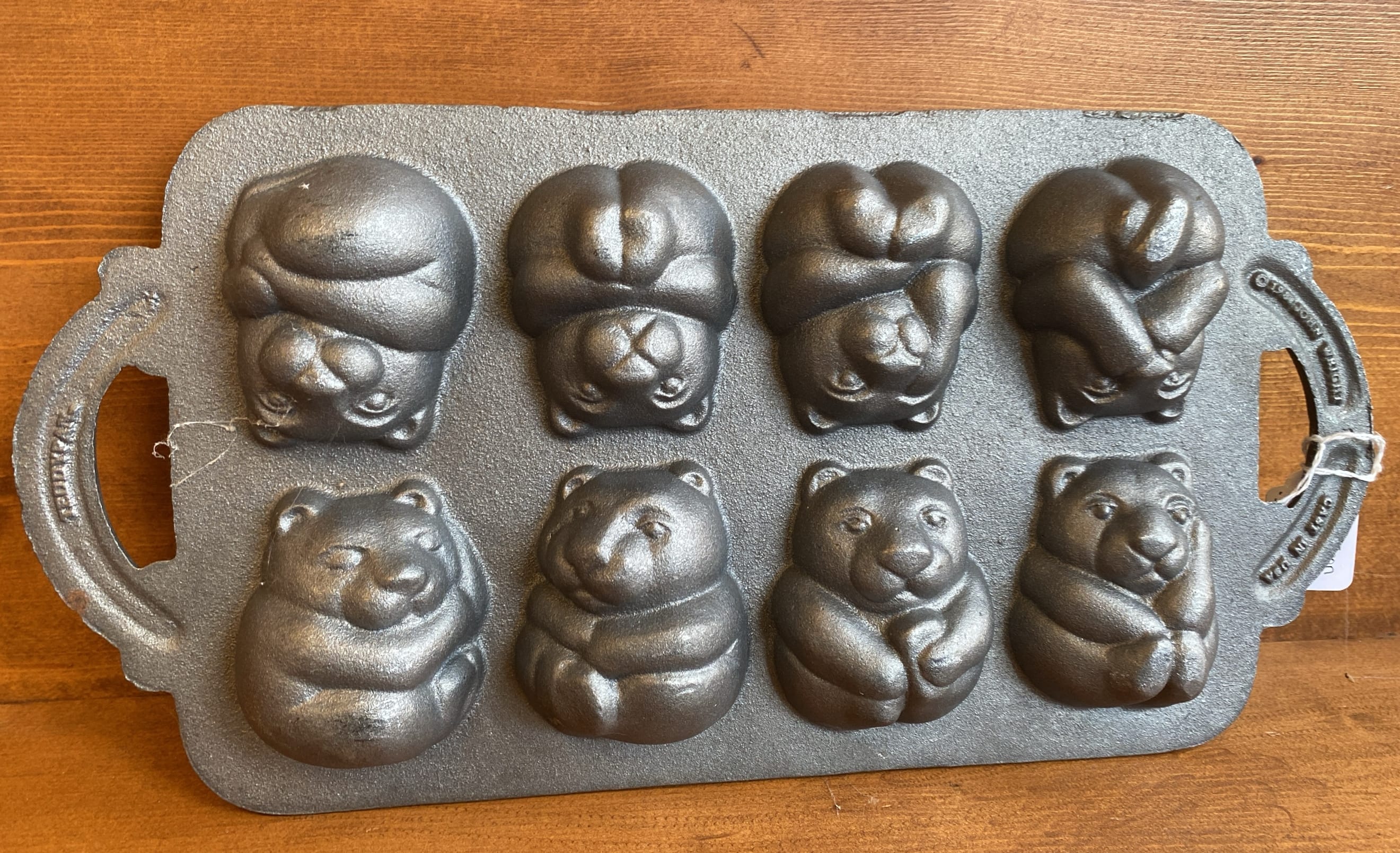 279 Cast Iron Teddy Bear Muffin Pan John Wright 12x7.5”